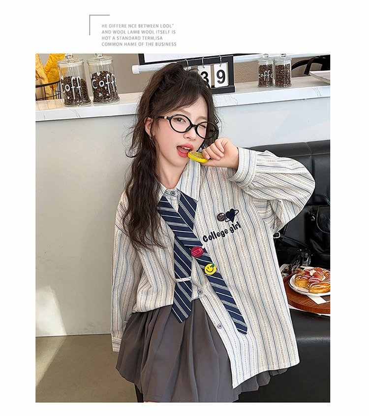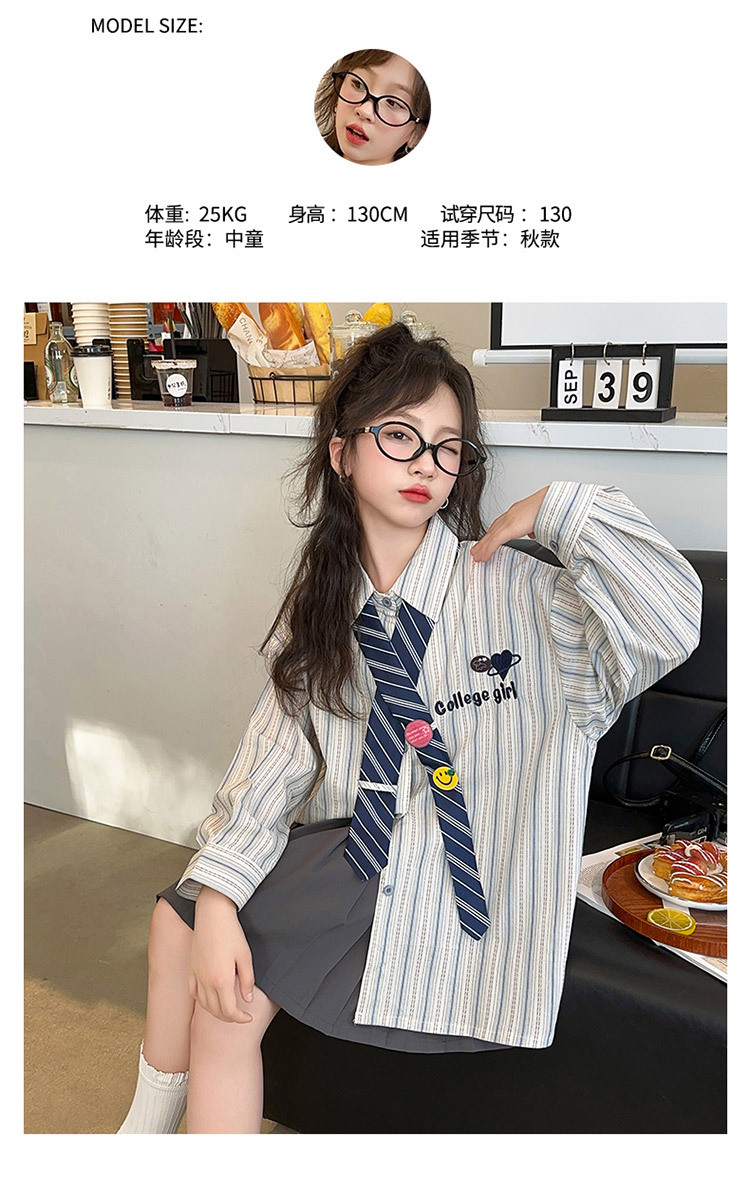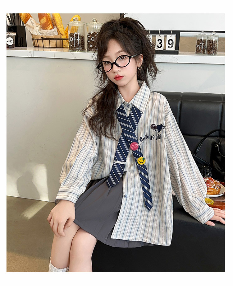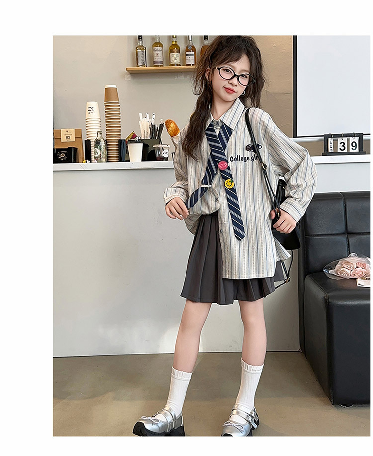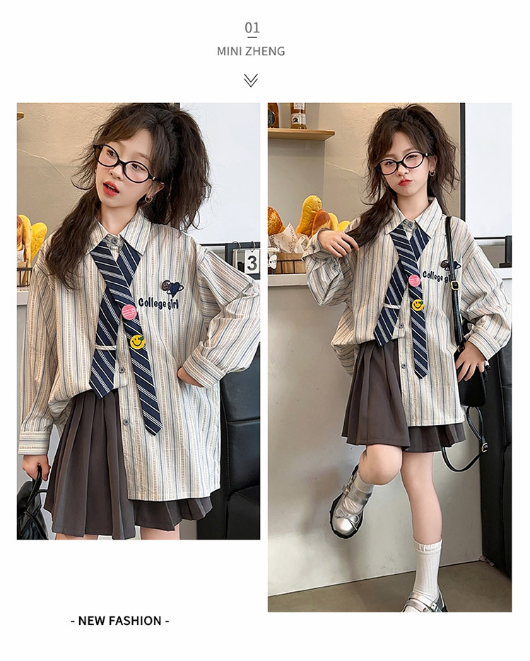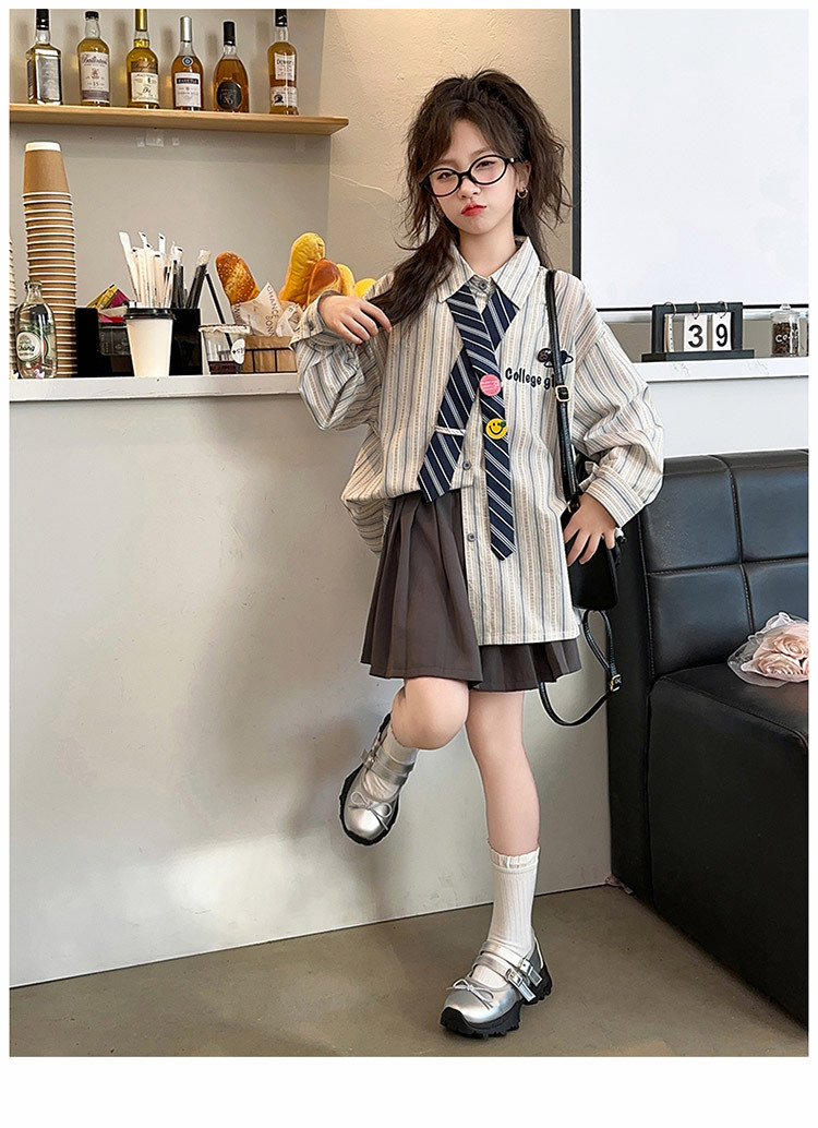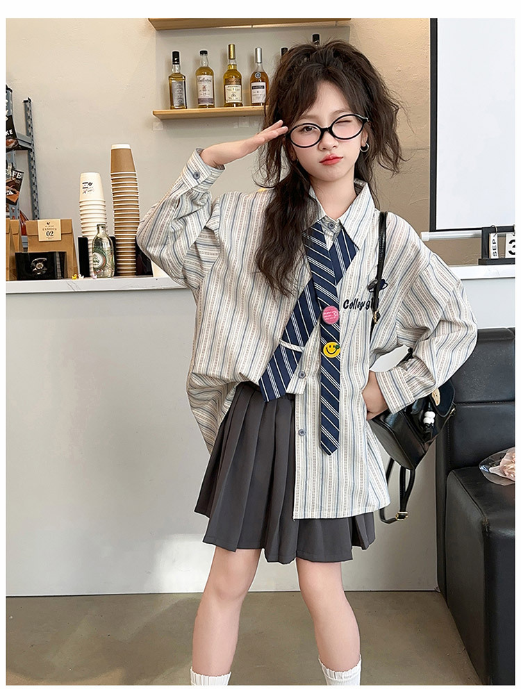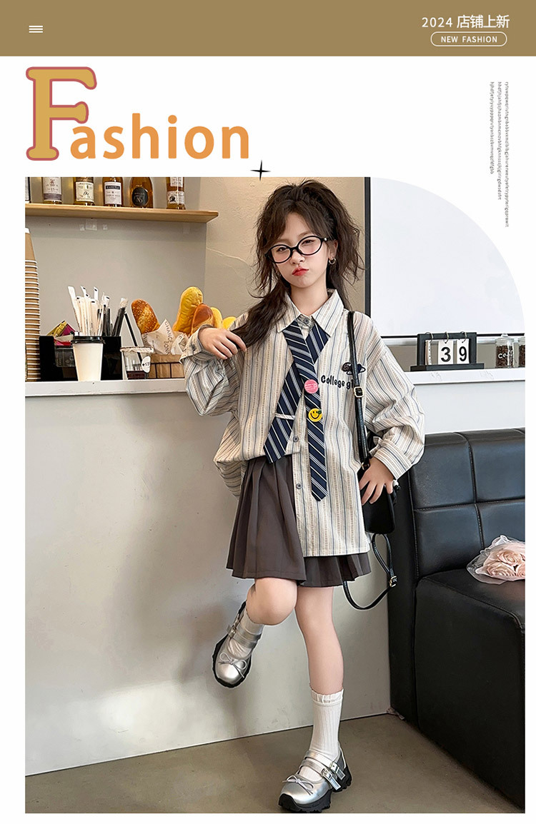 소녀의 봄과 가을 달콤한 셔츠 짧은 치마 세트 2024 가을 큰 어린이 유행 서양식 한국 아카데미 스타일 투피스 세트스토어 가기
