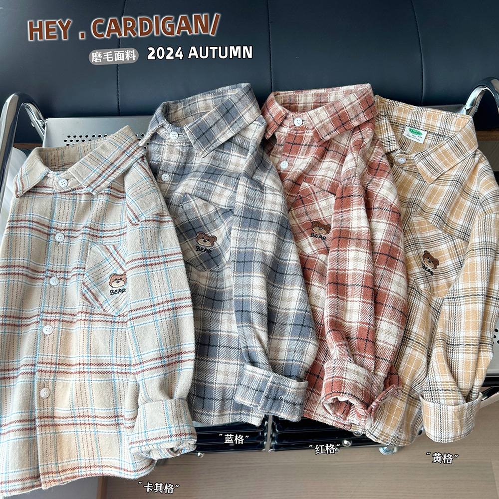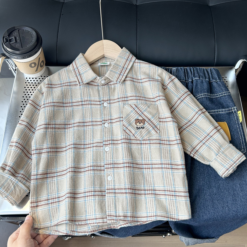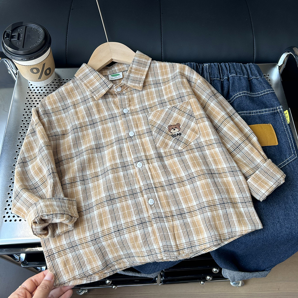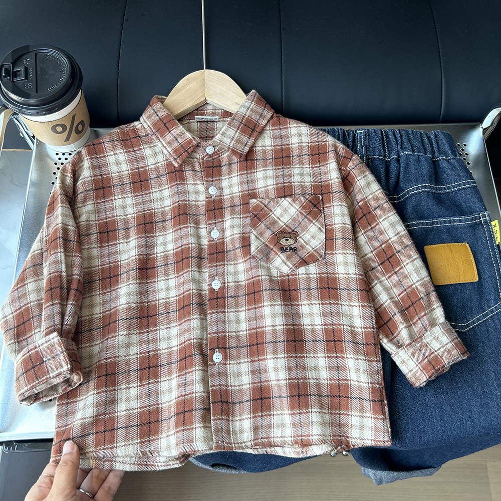 남아용 기모 체크 셔츠 봄 가을 아동복 남아용 2025 가을 신상 셔츠 도매