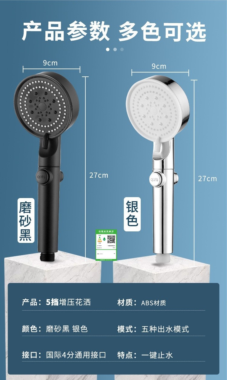 • 블랙 내추럴 컬러 스프레이 5단 지수 샤워 헤드