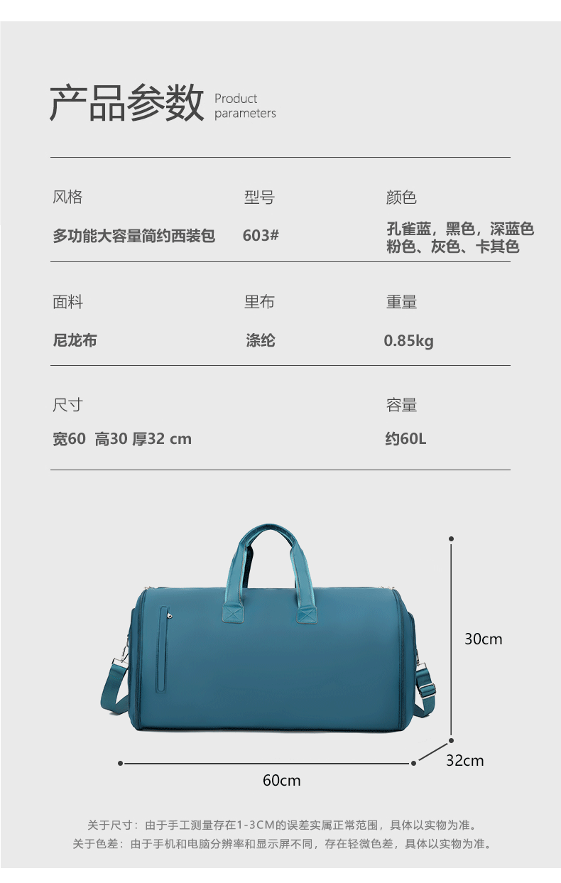包包尺寸:宽60cm*厚30cm*高32cm。重量0.85KG