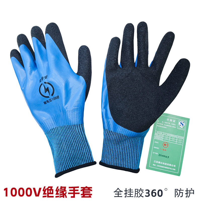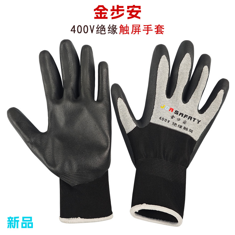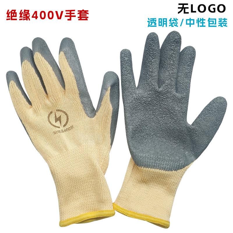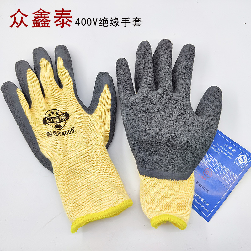 전기 기술자를위한 Jinbuan 400V 특수 절연 장갑 미끄럼 방지 주름 고무 저압 통기성 노동 장갑스토어 가기