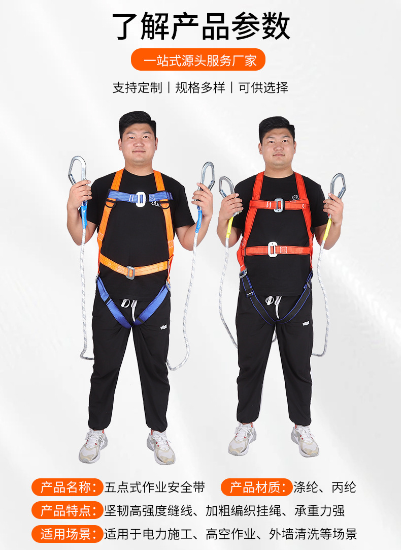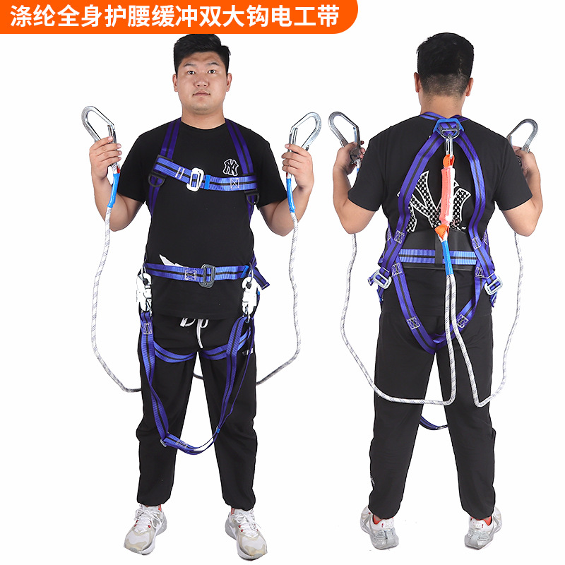 신국가표준 안전벨트 고공작업용 5점식 안전벨트 폴리에스터 폴리프로필렌 유럽식 더블 대형 후크 2m 추락방지스토어 가기