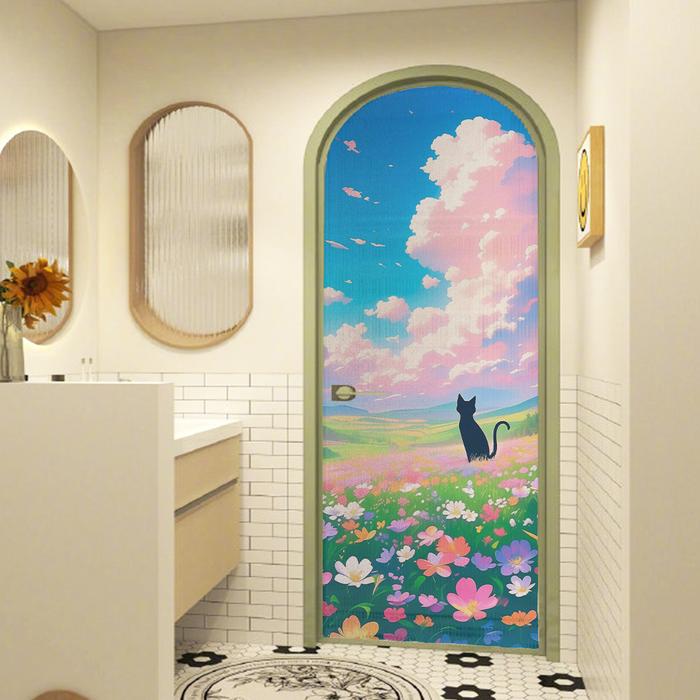 Yiyao BLT5134 꽃밭 Yunhai 새끼 고양이 인쇄 유리 스티커 욕실 장식 유리 문 및 Windows 접착제없는 정전기 스티커스토어 가기