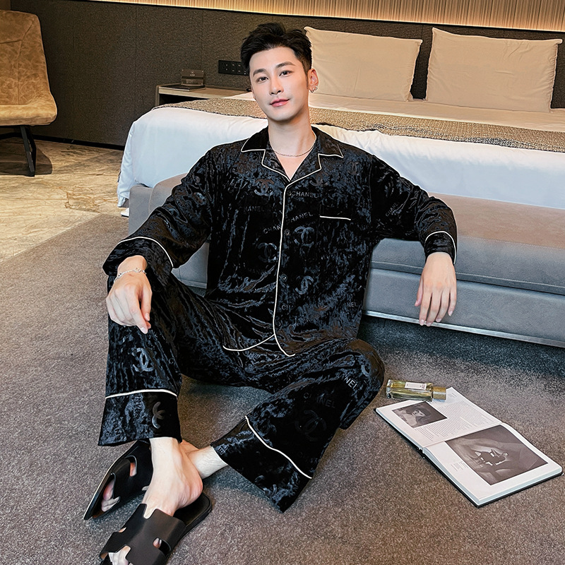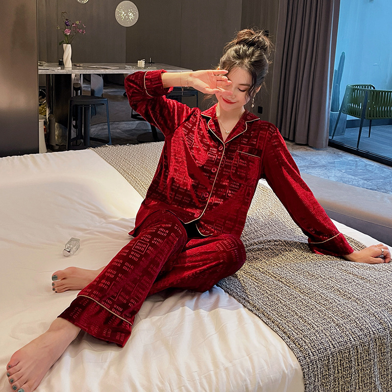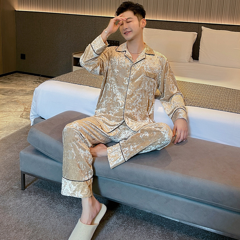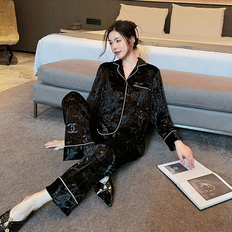 황금 벨벳 커플 잠옷 여성의 가을과 겨울 긴팔 바지 편지 인쇄 세트 느슨한 플러스 사이즈 남성 홈 옷스토어 가기