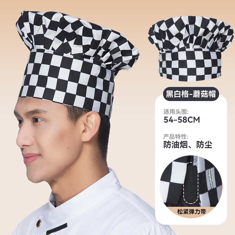 • 요리사 버섯 모자 - 흑백 체크 무늬