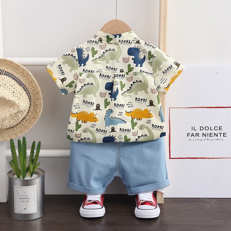 소년 공룡 셔츠 세트 유행 잘 생긴 유행 1-2-2.5 세 3 소년 아기 4 여름 원피스 분할 한국 잘 생긴스토어 가기