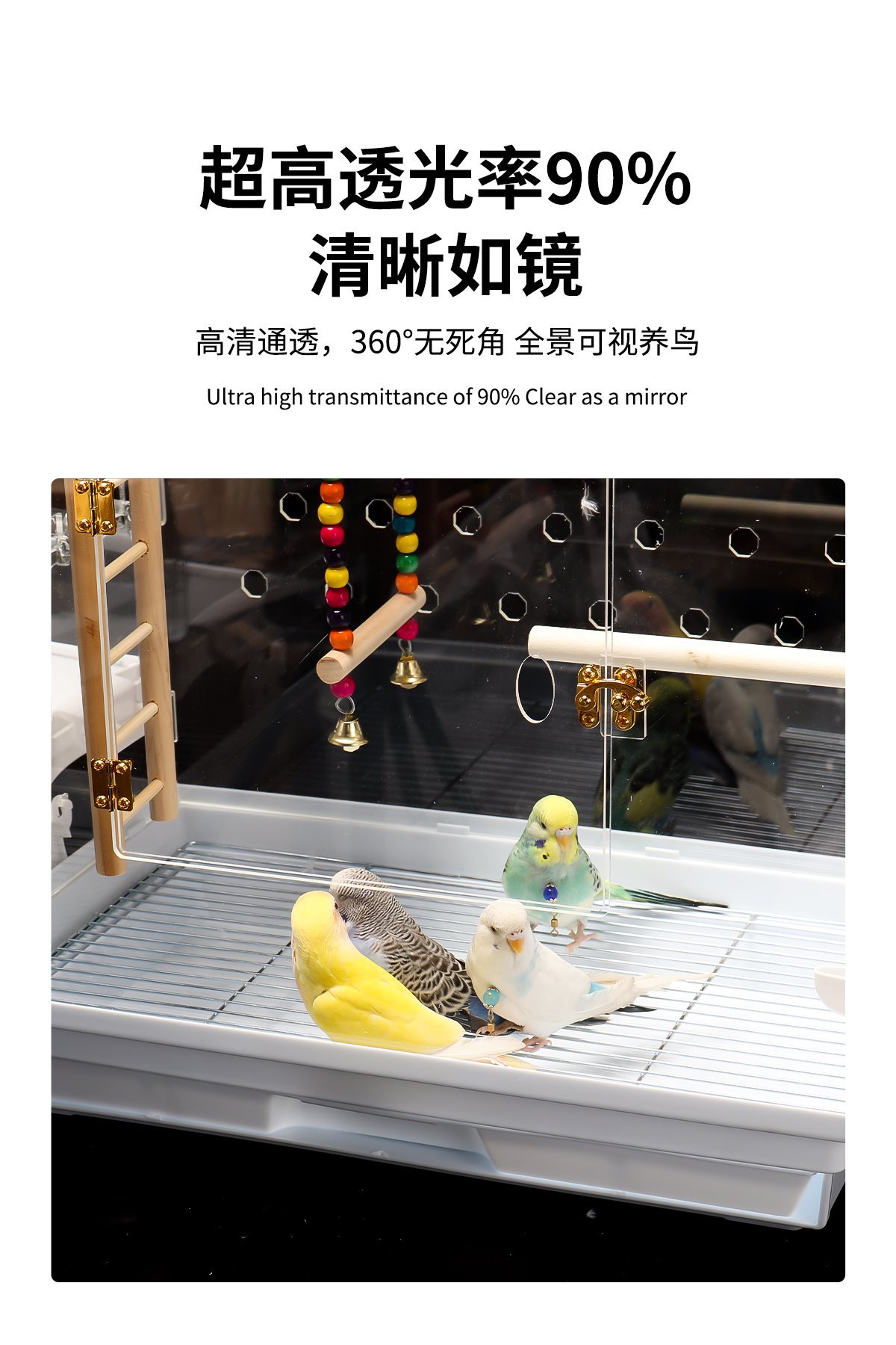 앵무새 케이지 아크릴 새장 투명한 파노라마 럭셔리 스플래시 방지 호랑이 피부 모란 Xuan Feng 관상용 번식 케이지스토어 가기