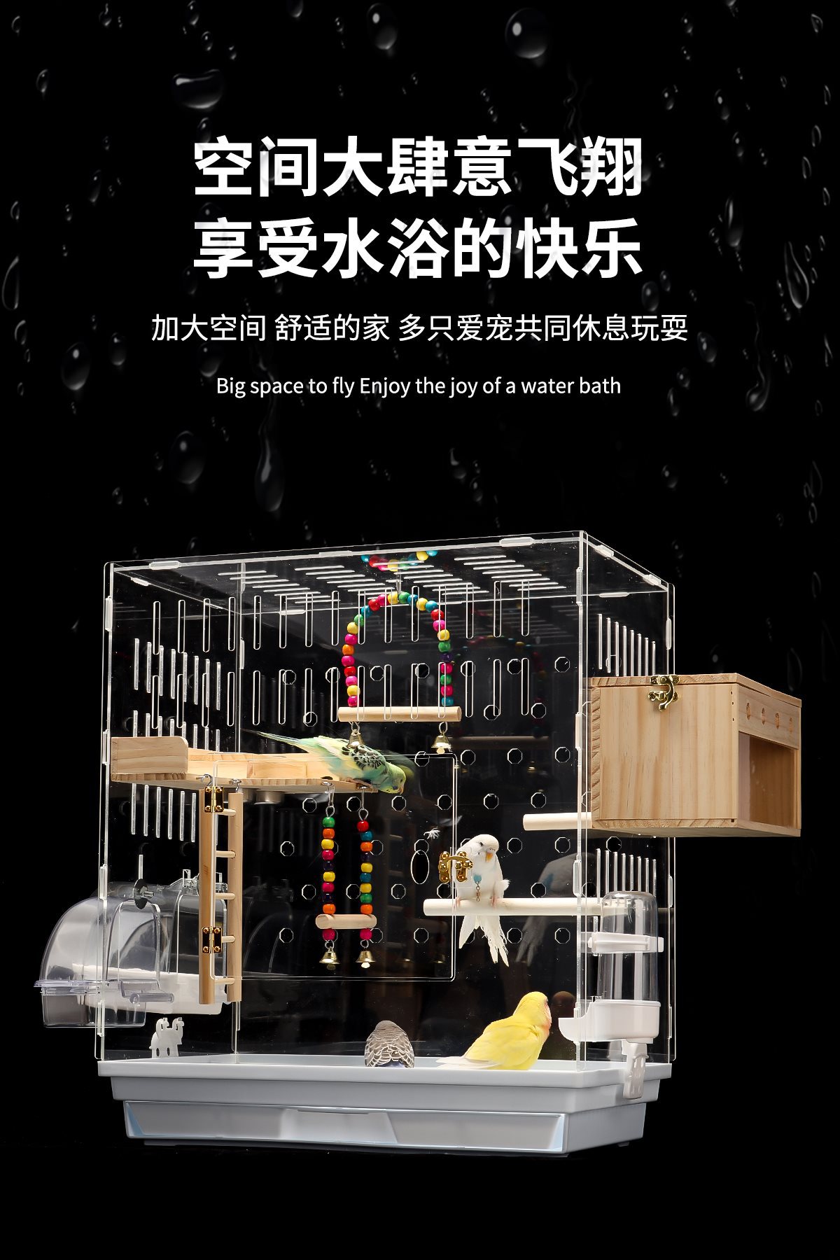 앵무새 케이지 아크릴 새장 투명한 파노라마 럭셔리 스플래시 방지 호랑이 피부 모란 Xuan Feng 관상용 번식 케이지