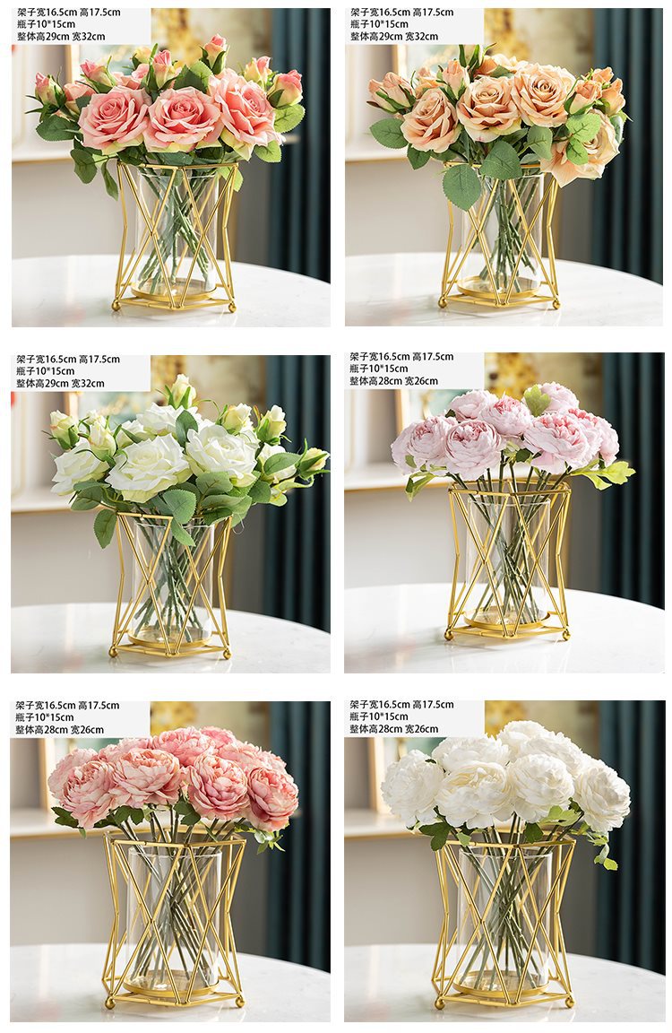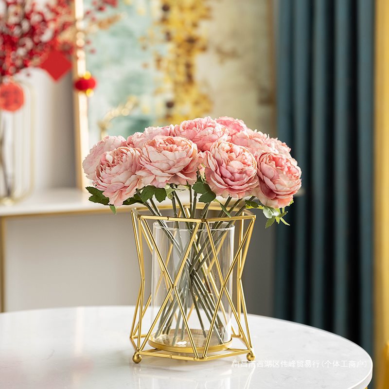 창조적 인 수경 유리 꽃병 가짜 말린 꽃꽂이 가벼운 고급 장식품 거실 식탁 커피 테이블 꽃 장식