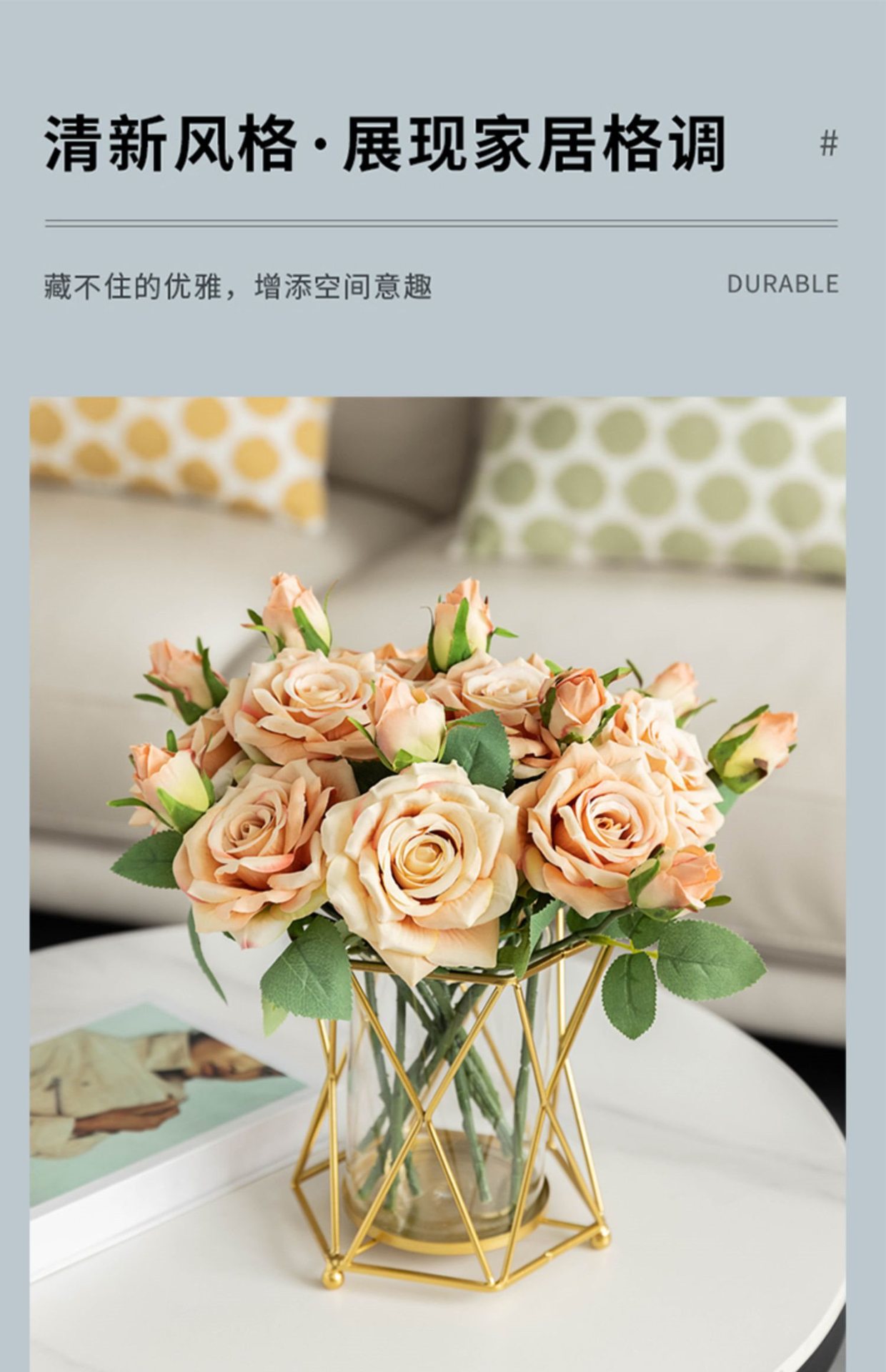 • 양방향 샴페인 장미 10개 + 물을 저장할 수 있는 기하학적 꽃병