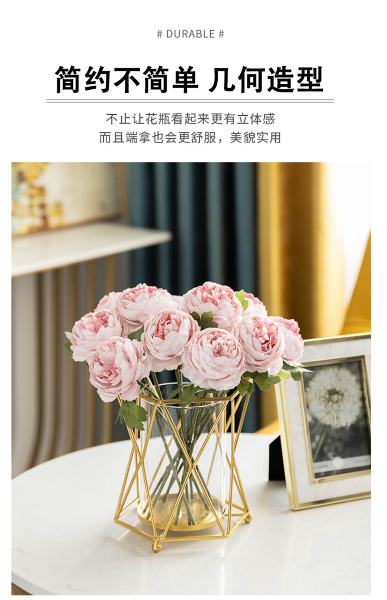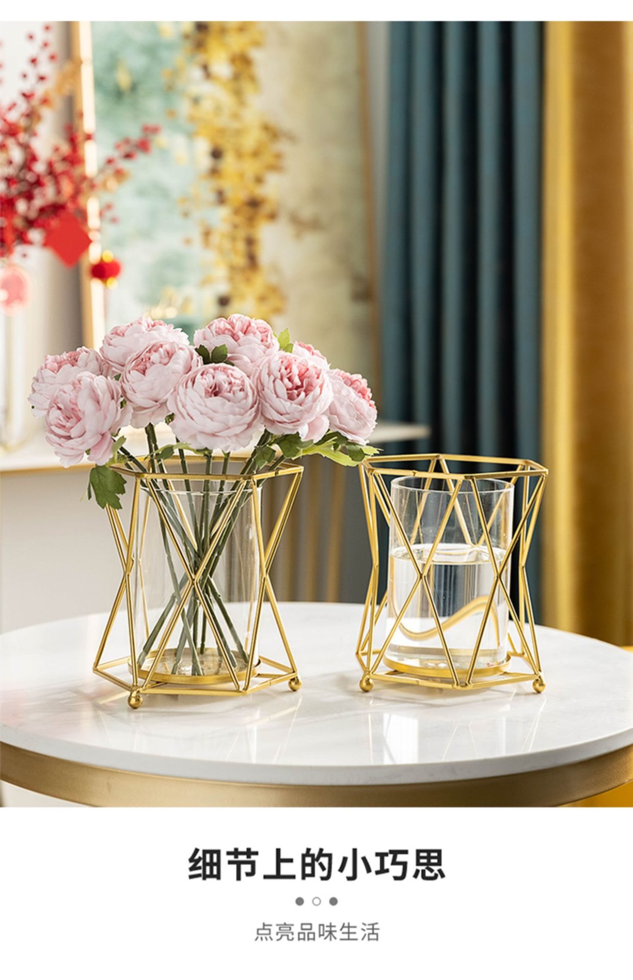 창조적 인 수경 유리 꽃병 가짜 말린 꽃꽂이 가벼운 고급 장식품 거실 식탁 커피 테이블 꽃 장식스토어 가기