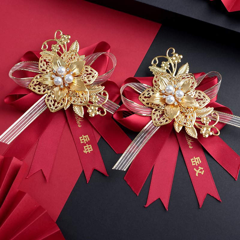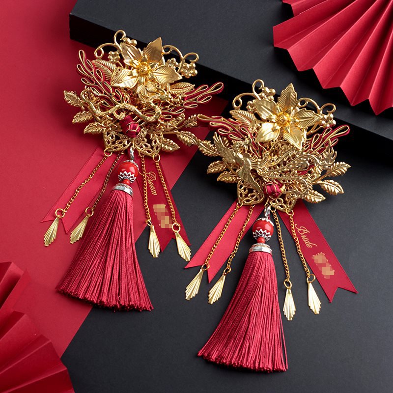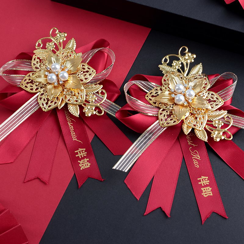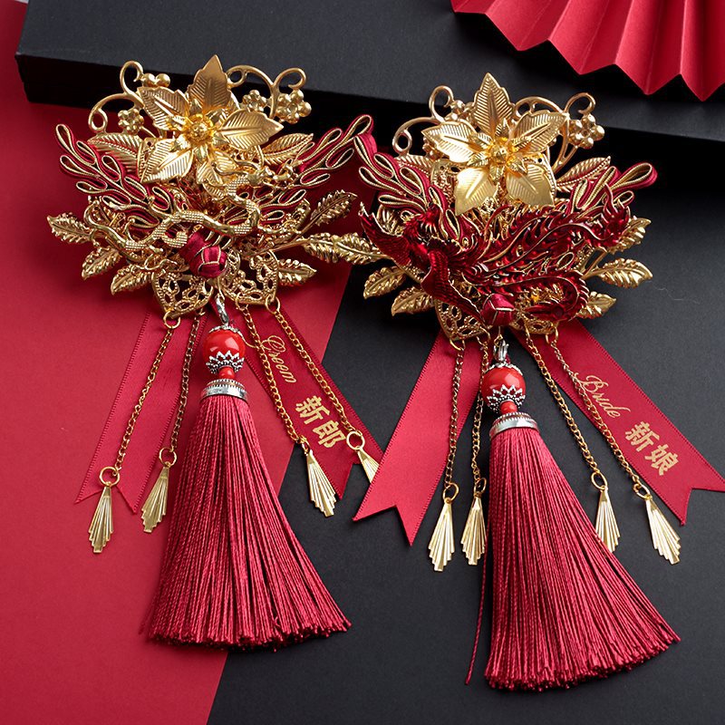 중국 스타일 신부와 신랑 드래곤과 피닉스 코르세이지 웨딩 술 펜던트 부모 꽃 무늬 신부 들러리 최고의 남자 브로치 풀 세트