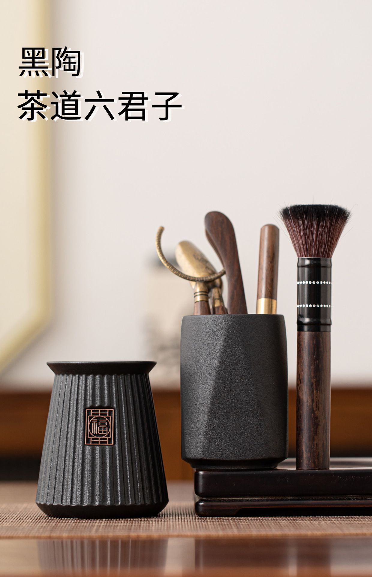 첸샹 다도 6 명의 신사 세트 에보니 솔리드 우드 티 클립 티 칼 티 도구 차 세트 액세서리 차 튜브 보관 튜브