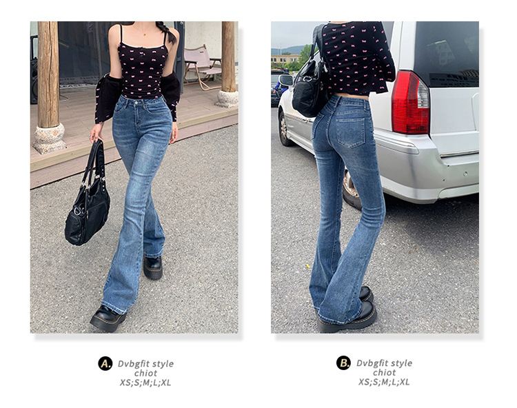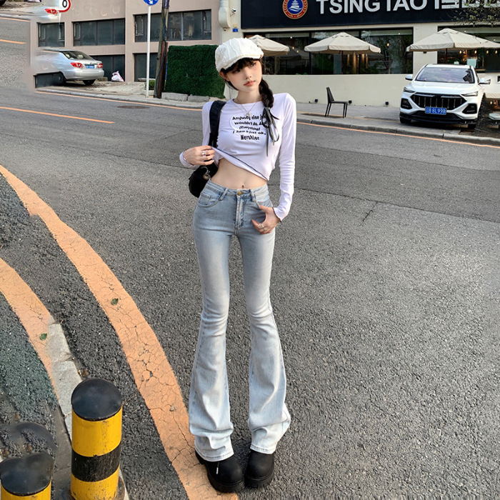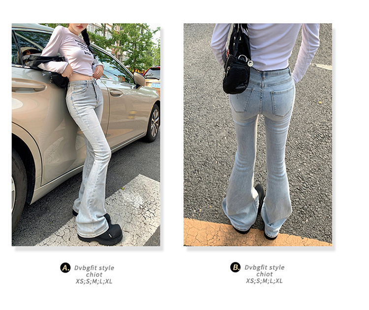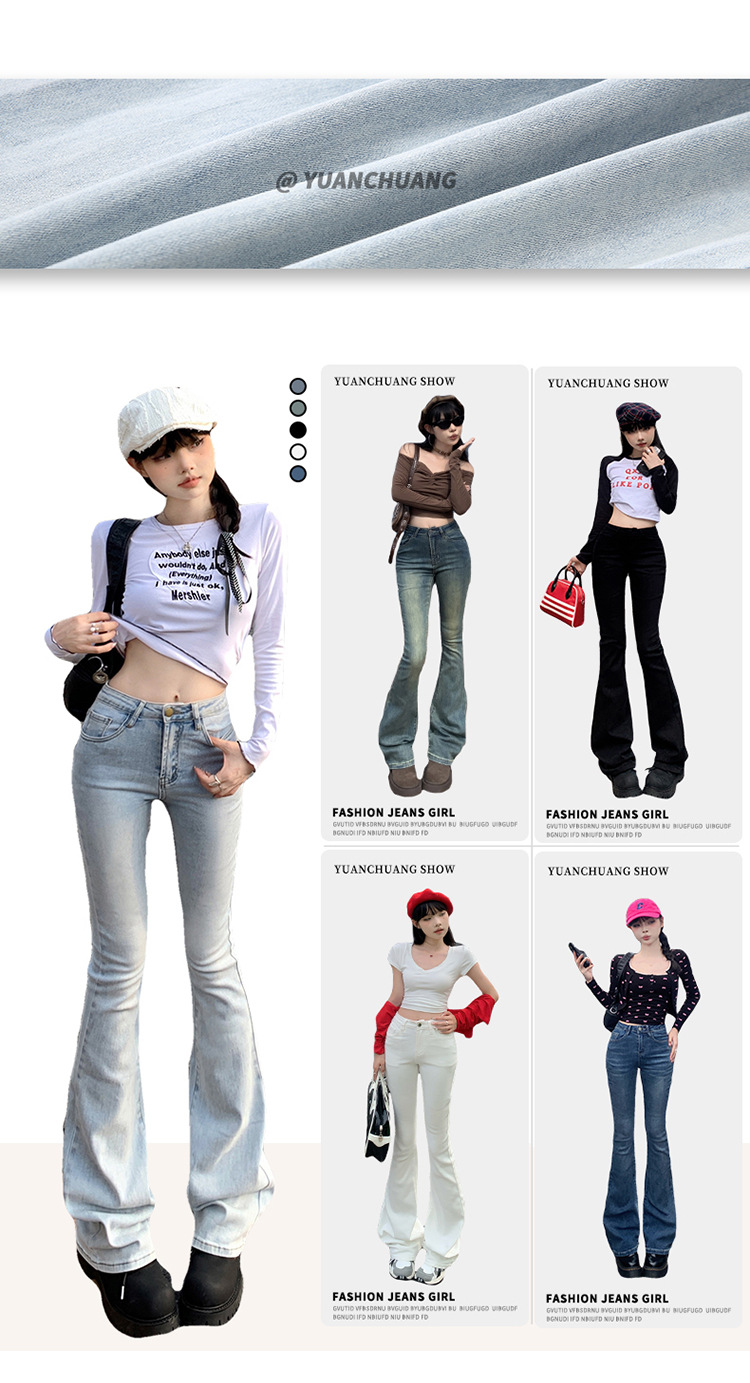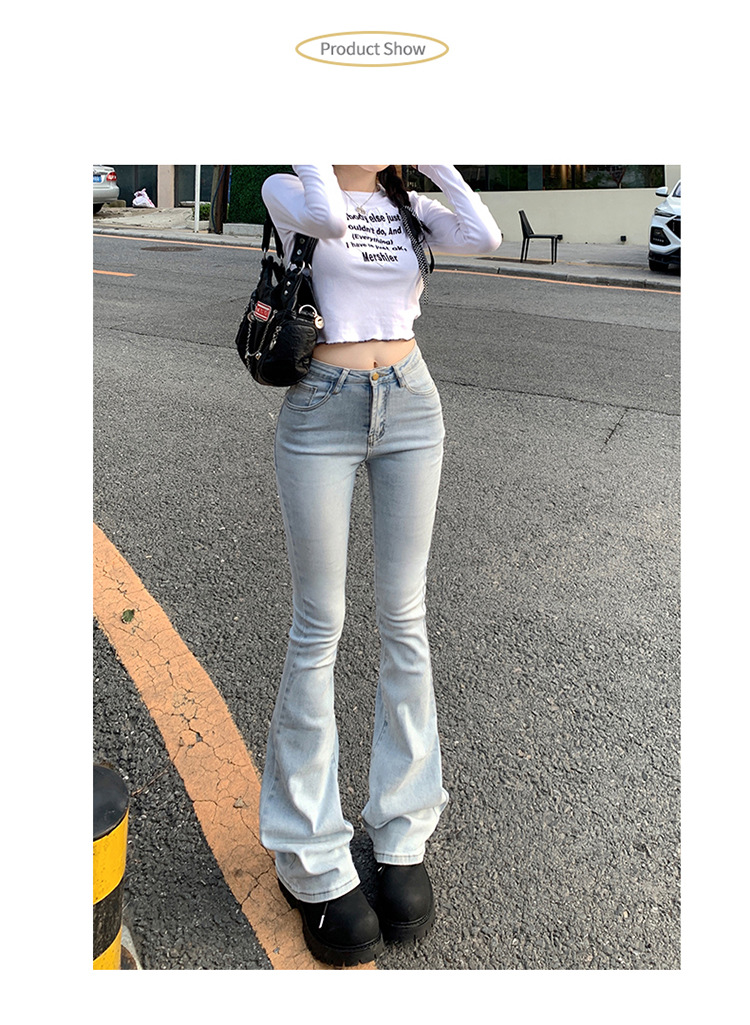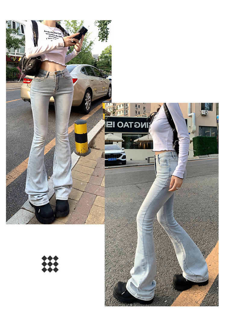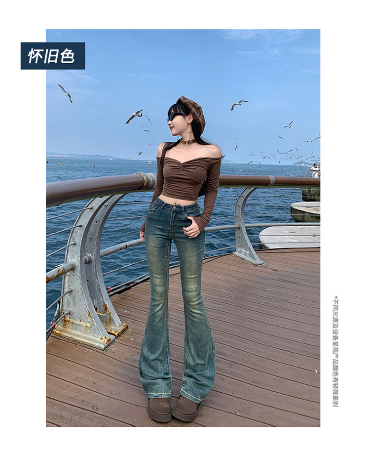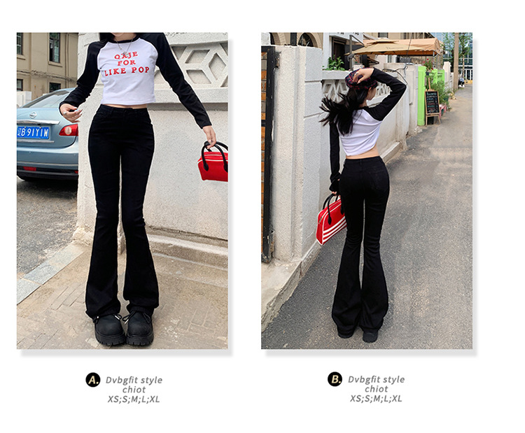 미국 빈티지 마이크로 라르 청바지 가을 높은 허리 슬리밍 슬림 핫 걸 플레어 팬츠 여성용 정사이즈 세탁스토어 가기