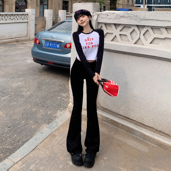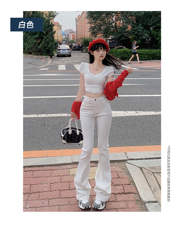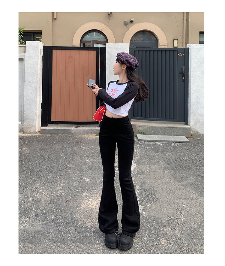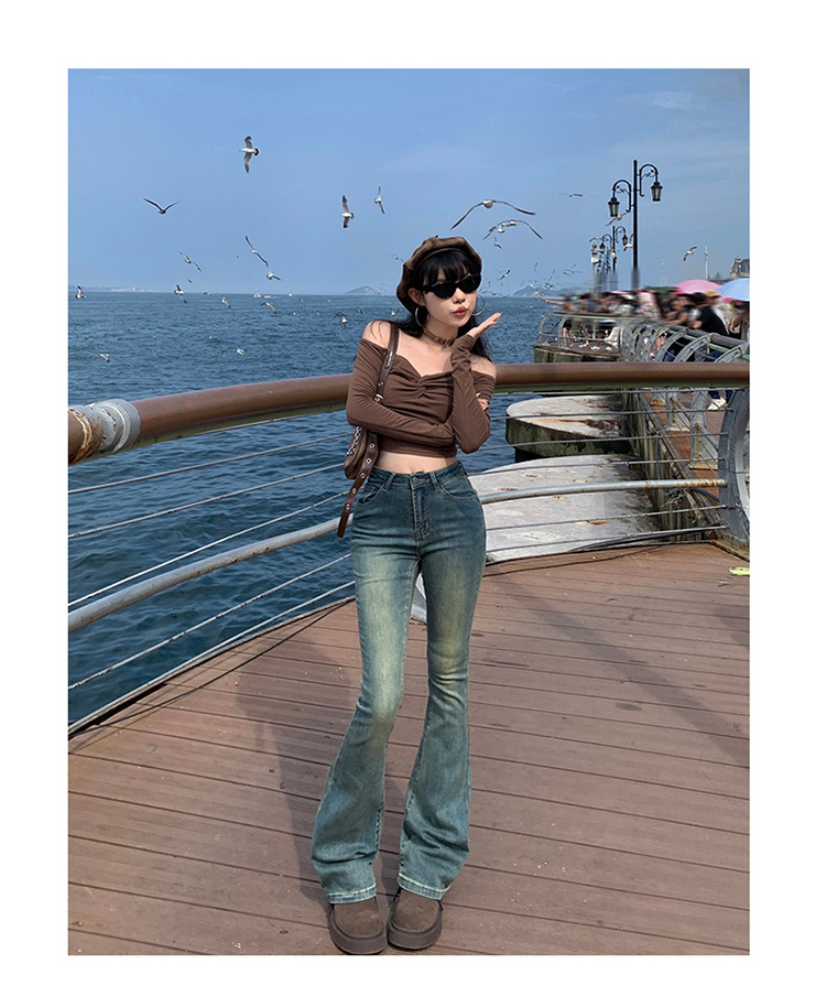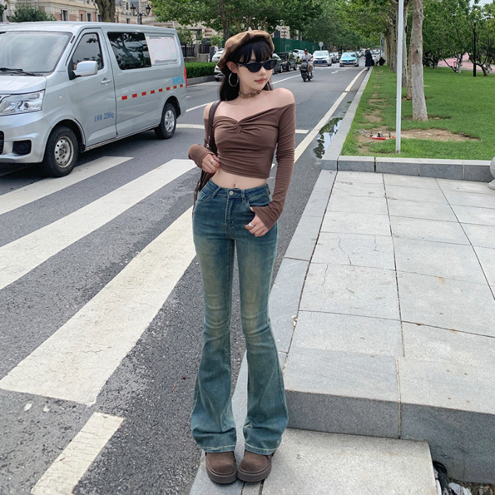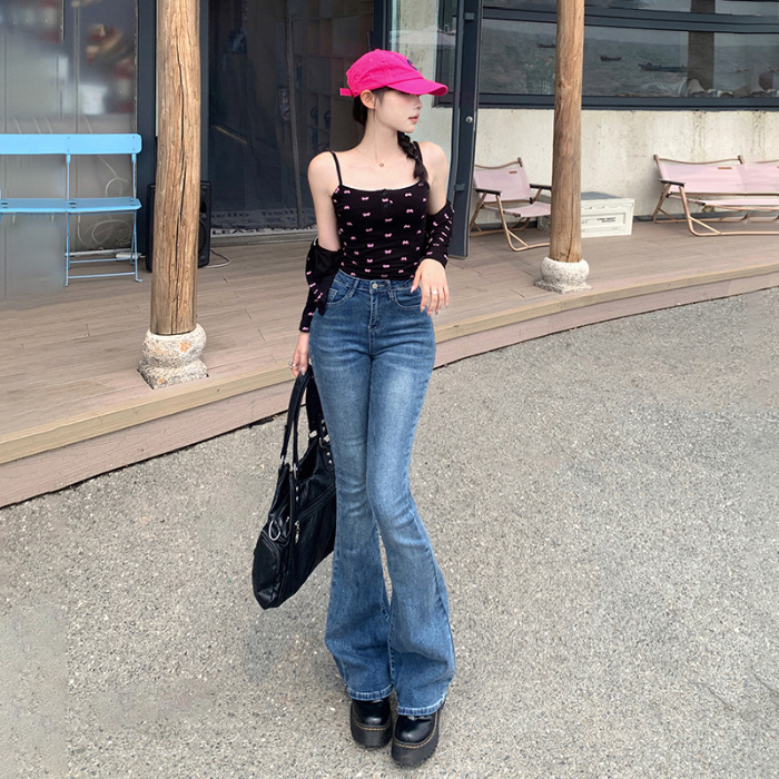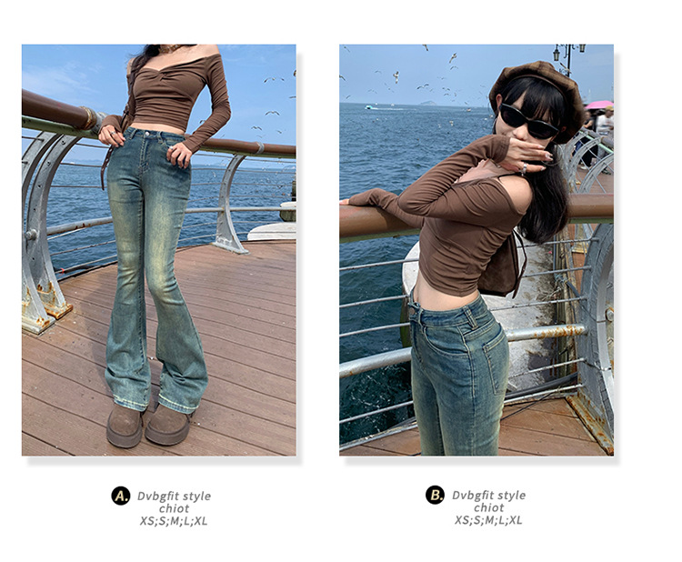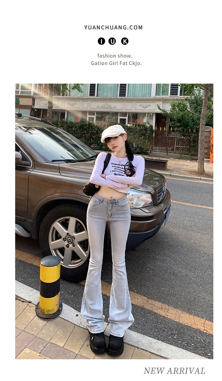 미국 빈티지 마이크로 라르 청바지 가을 높은 허리 슬리밍 슬림 핫 걸 플레어 팬츠 여성용 정사이즈 세탁스토어 가기