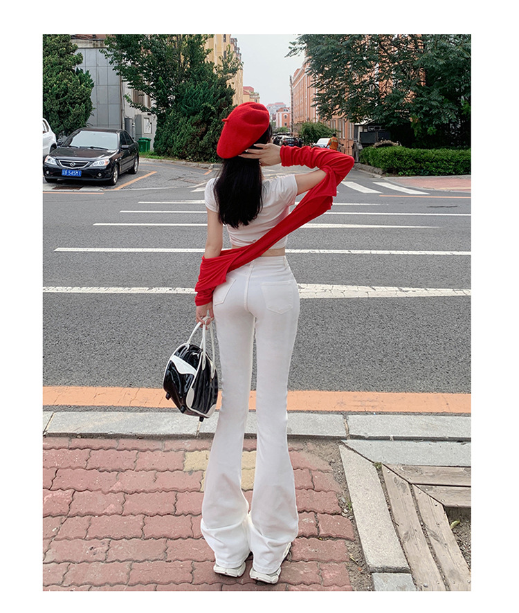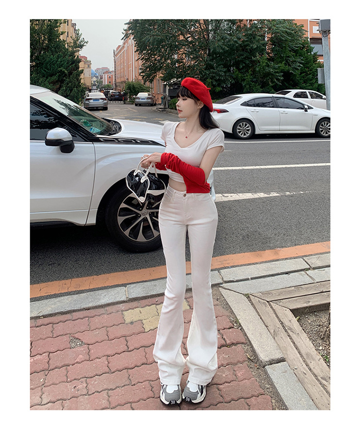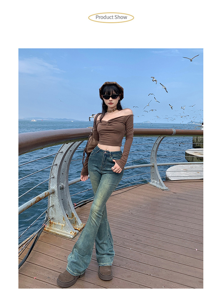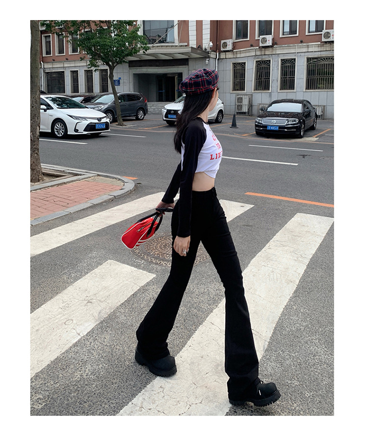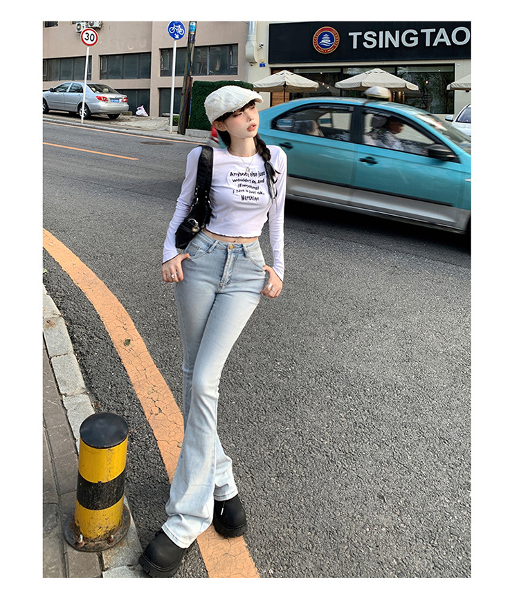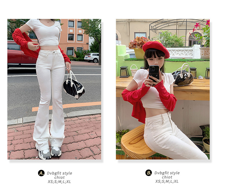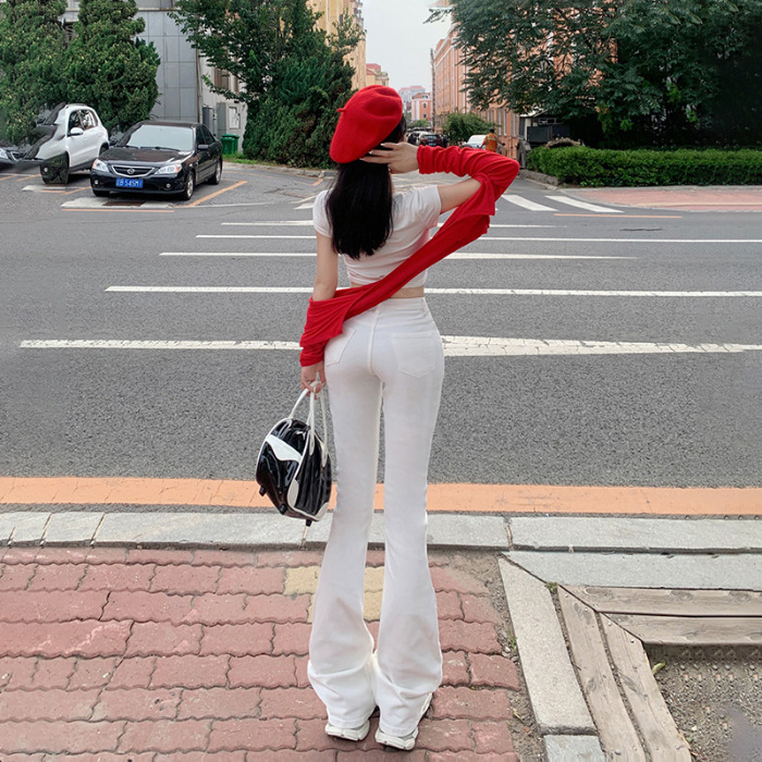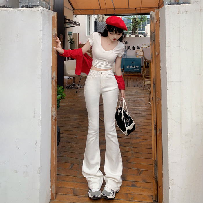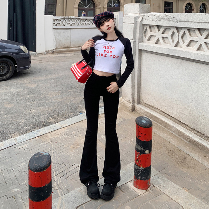 미국 빈티지 마이크로 라르 청바지 가을 높은 허리 슬리밍 슬림 핫 걸 플레어 팬츠 여성용 정사이즈 세탁스토어 가기