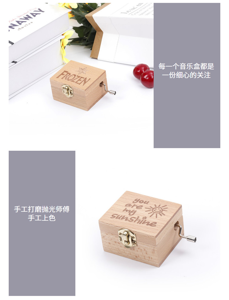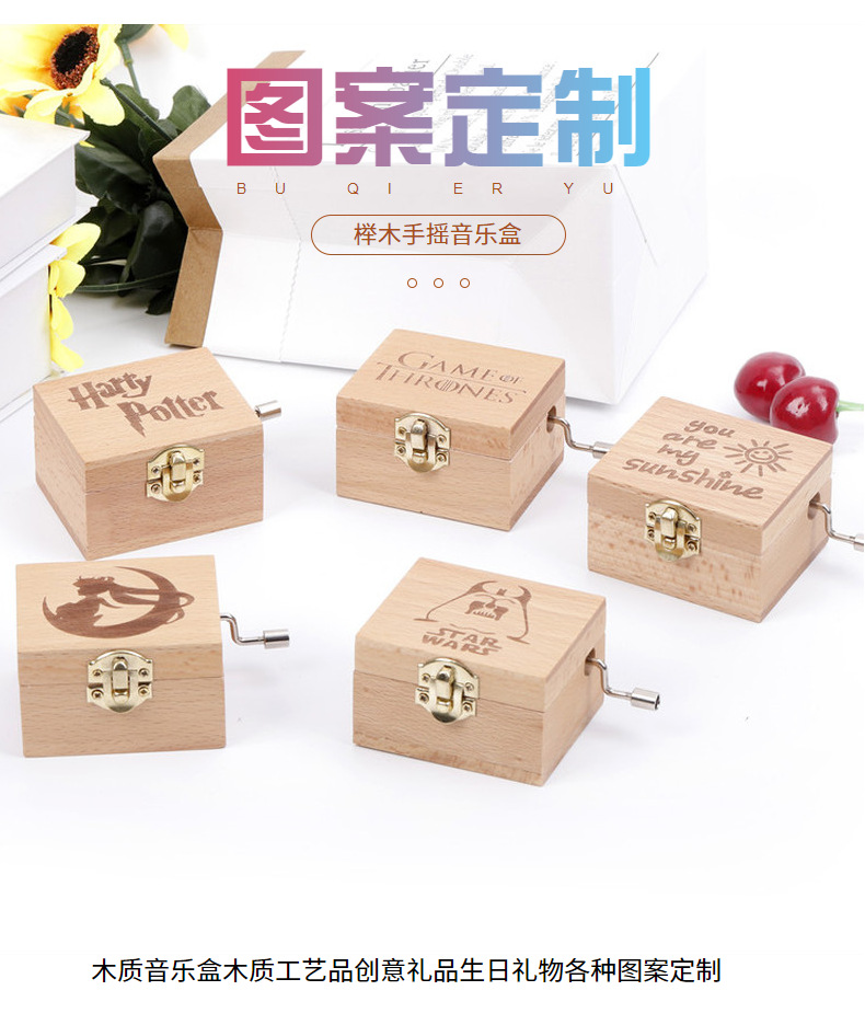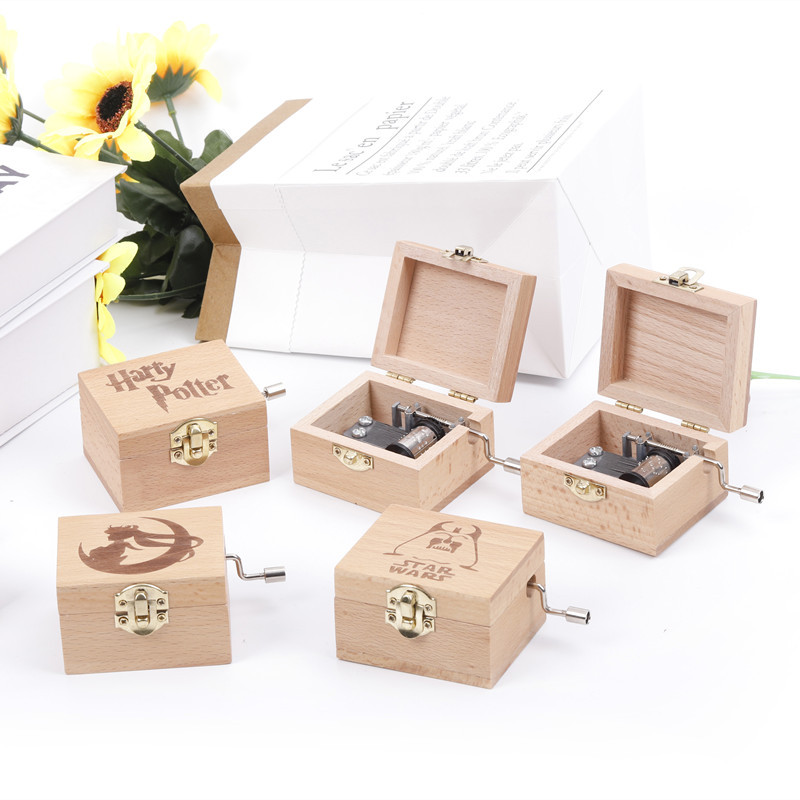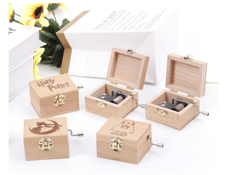 나무 너도밤 나무 핸드 크랭크 뮤직 박스 뮤직 박스 크리에이티브 홈 장식 휴일 생일 선물 국경 조각스토어 가기