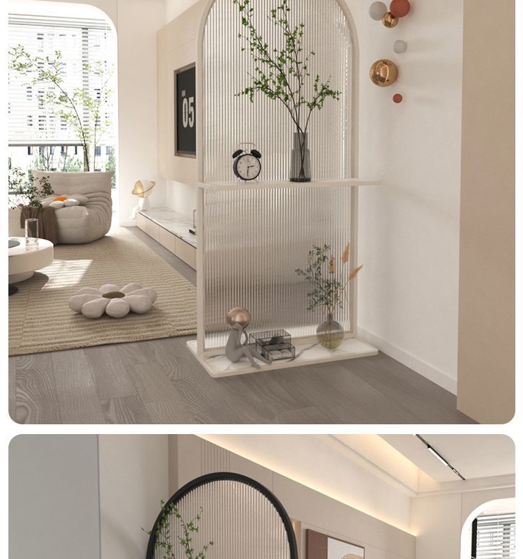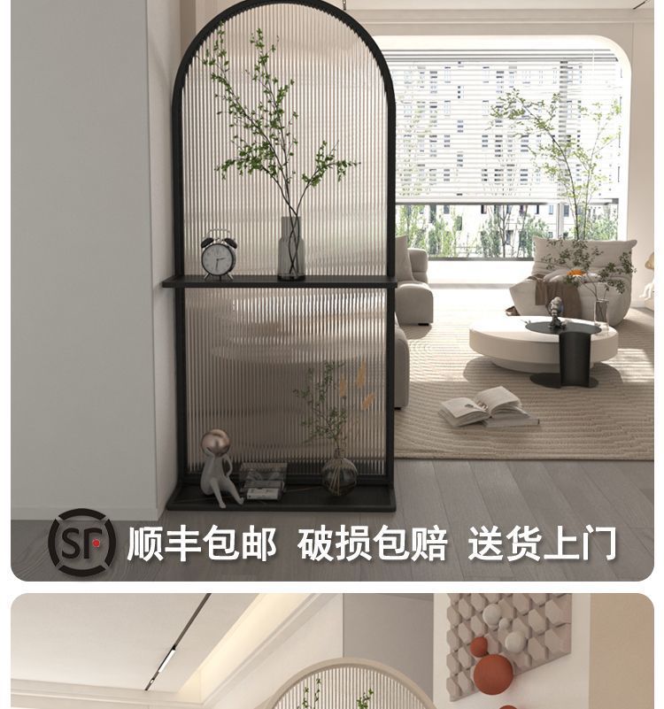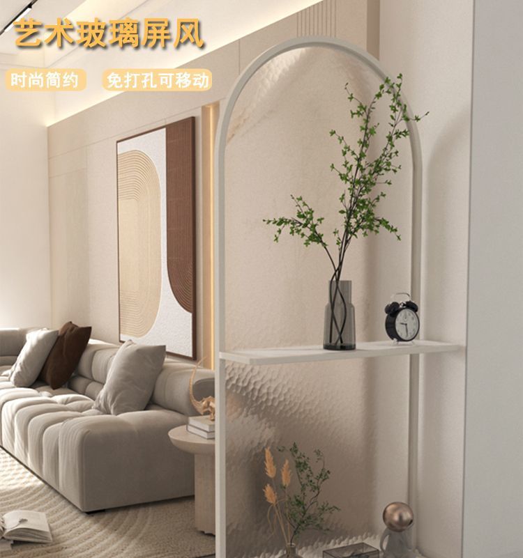 Lw0 크림 에어 엔트리 소파 창홍 유리 곡선 파티션 선반 거실 입구 화면 이동 가능