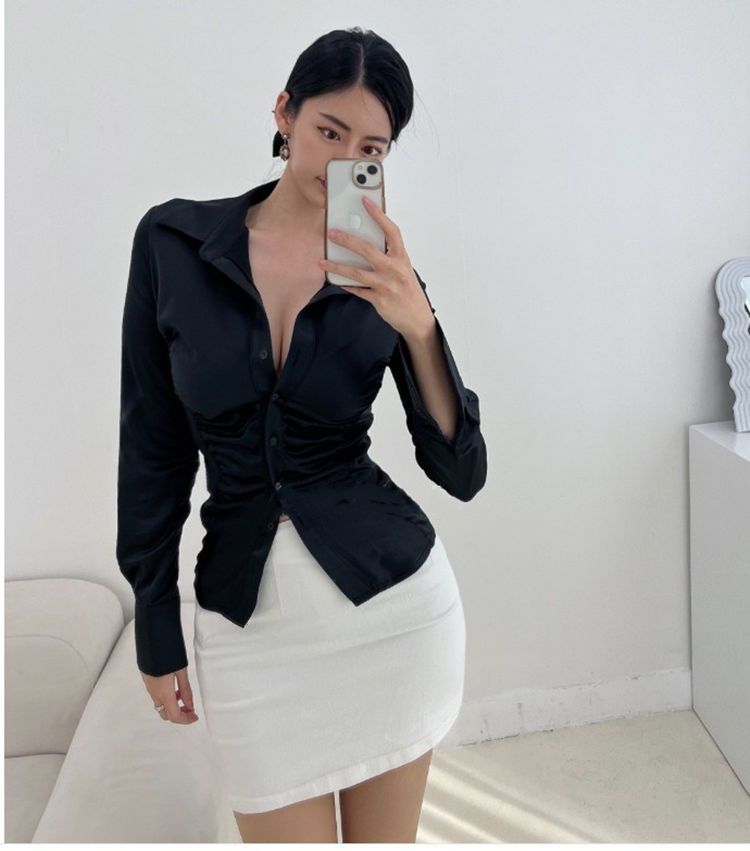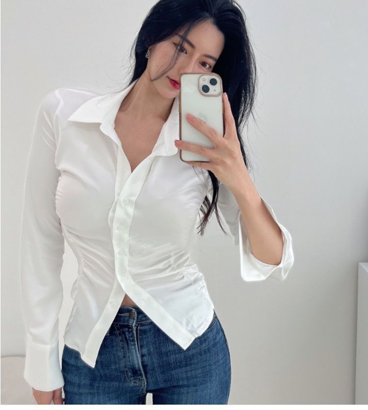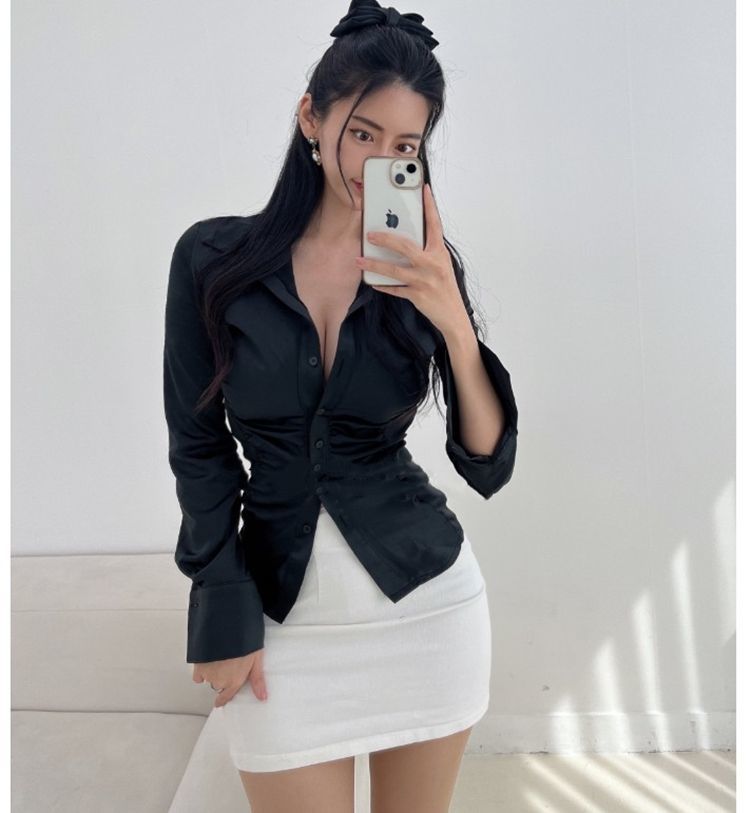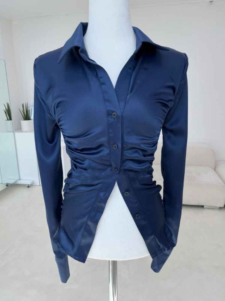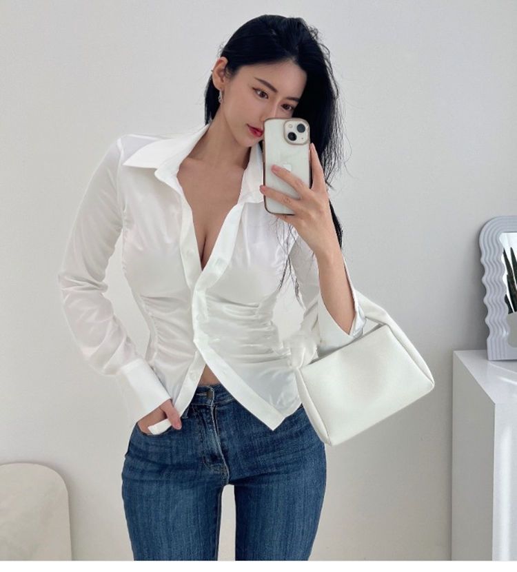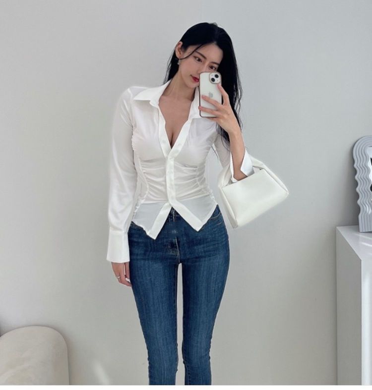 봄과 가을 새로운 한국식 우아한 프랑스 스타일 새틴 캐주얼 홍콩 스타일 슬림핏 슬리밍 여성용 긴팔 셔츠스토어 가기