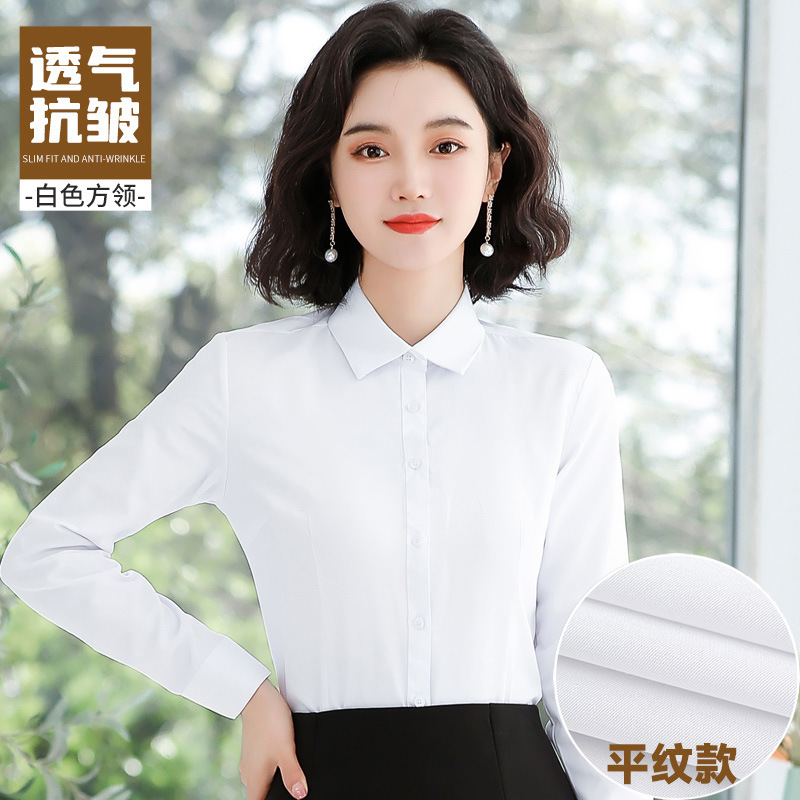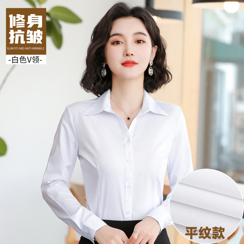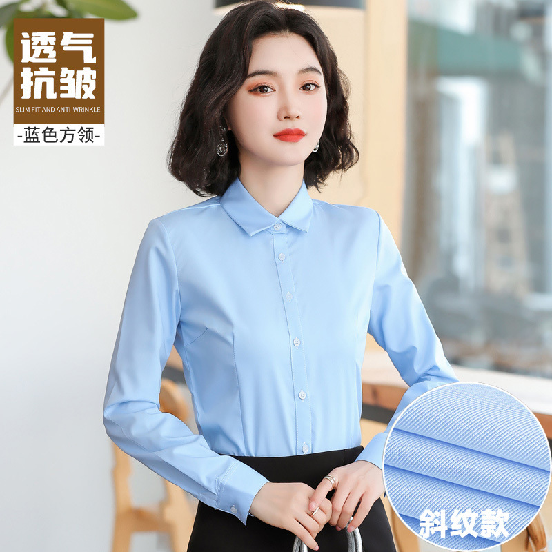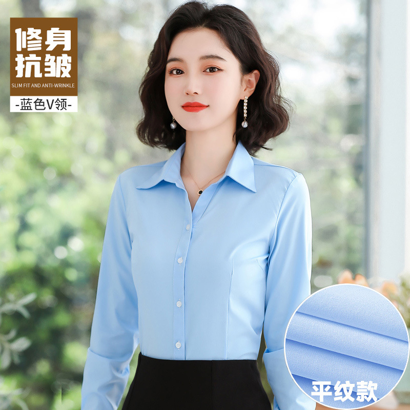 블루 셔츠 여성 원피스 봄과 가을 긴 소매 셔츠 통근 전문 작업복 한국 슬림핏 비즈니스 인터뷰 탑