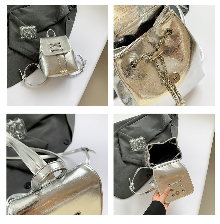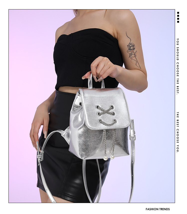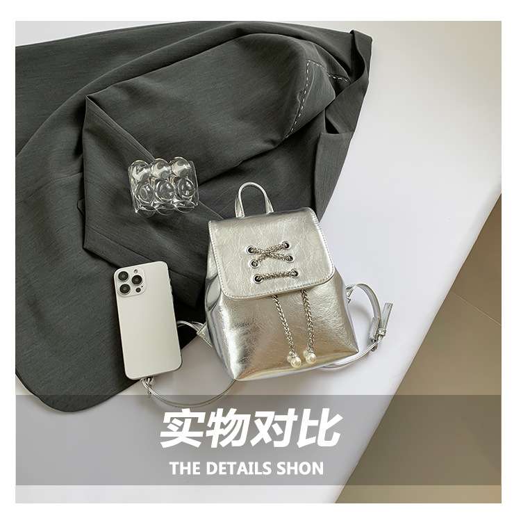 2024 새로운 패션 배낭 밝은 얼굴 한국 캐주얼 어깨 가방 여성 핸드백 휴대용 독특한 체인 스쿨백스토어 가기