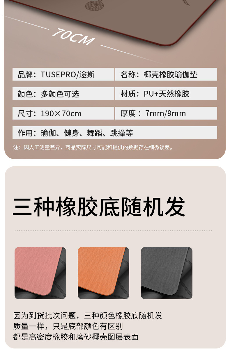 새로운 코코넛 껍질 규조토 고무 요가 매트, 전문가용 미끄럼 방지 홈 피트니스 요가 매트 70*190*7MM 줄넘기 매트스토어 가기