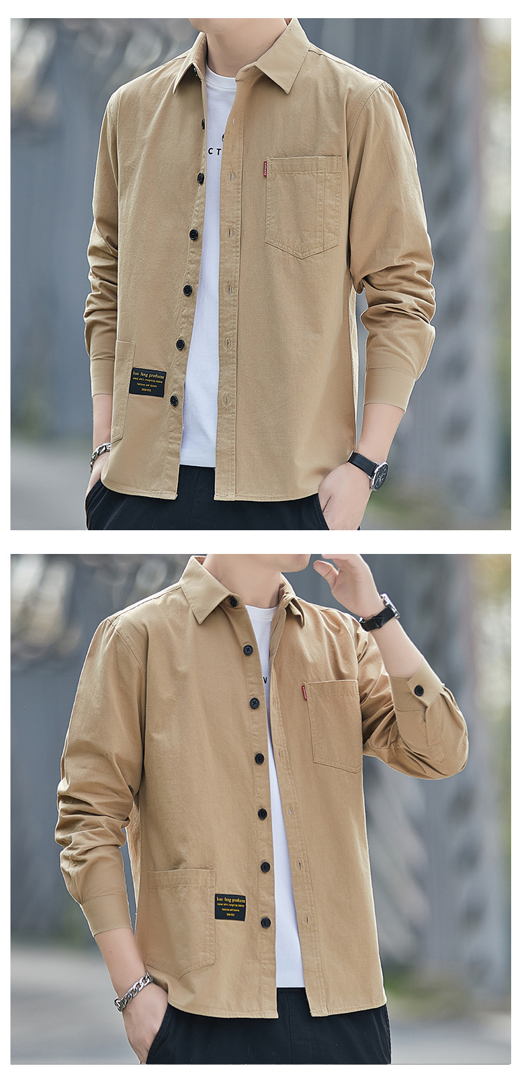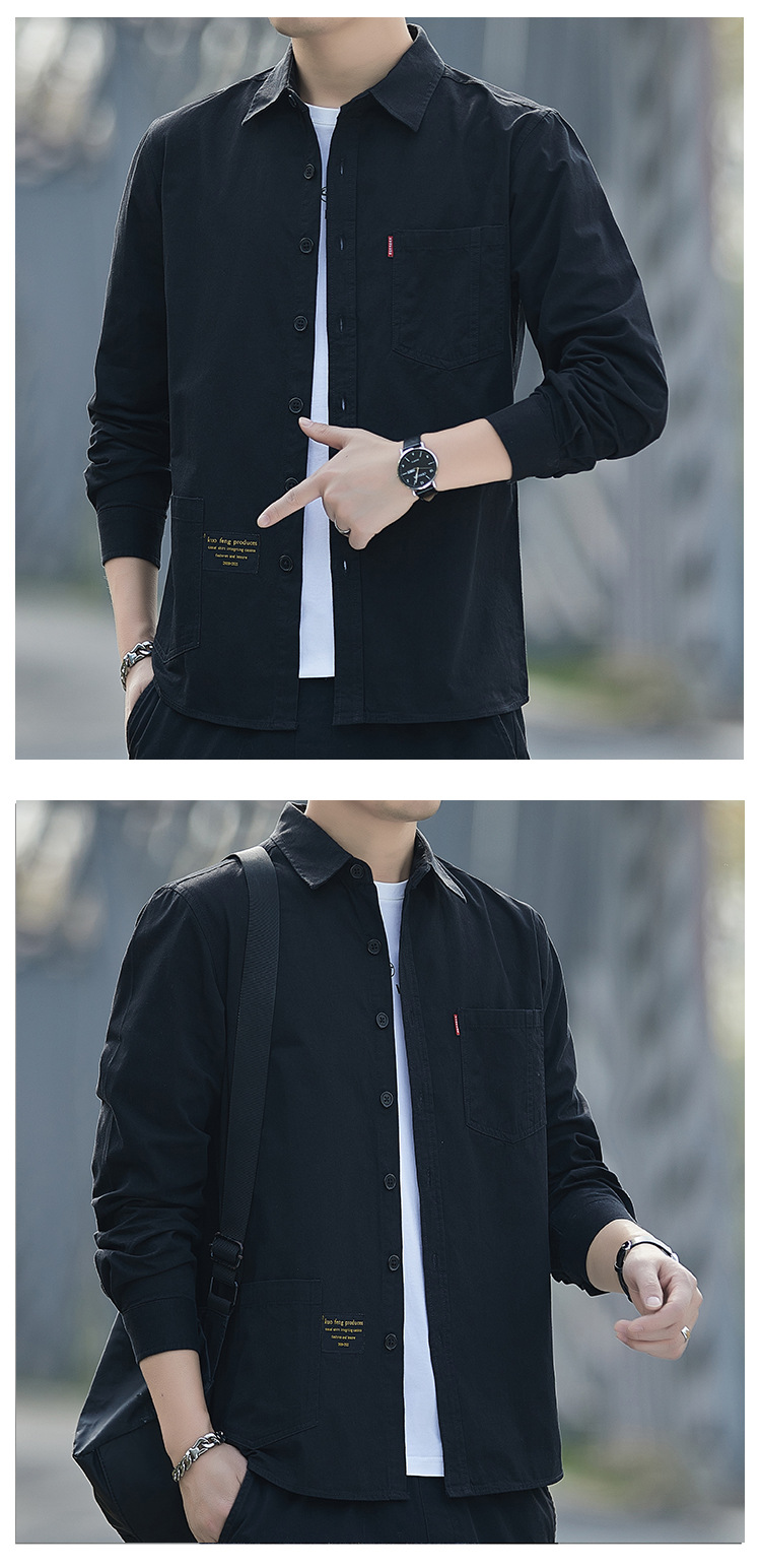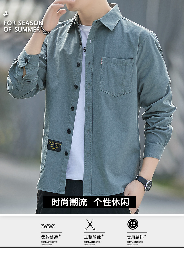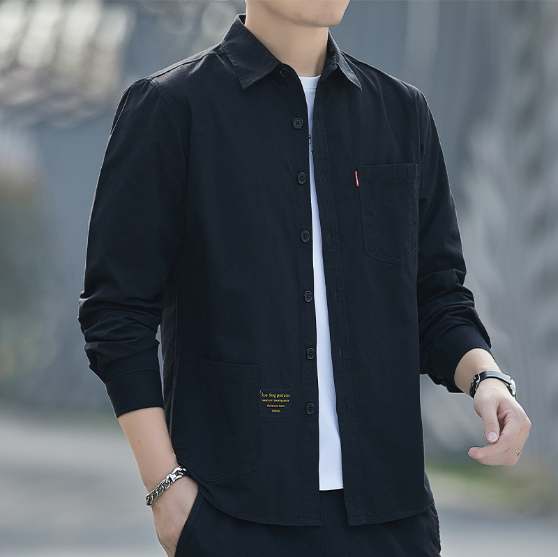 가을 100 면 남성 패션 긴 소매 셔츠 캐주얼 올 매치 비즈니스 셔츠 남성 탑 재킷