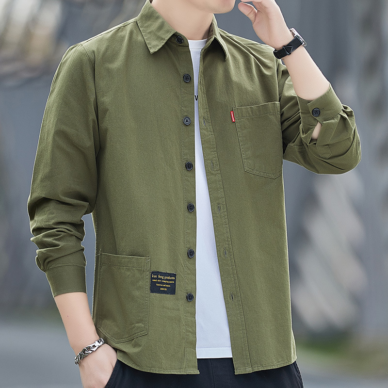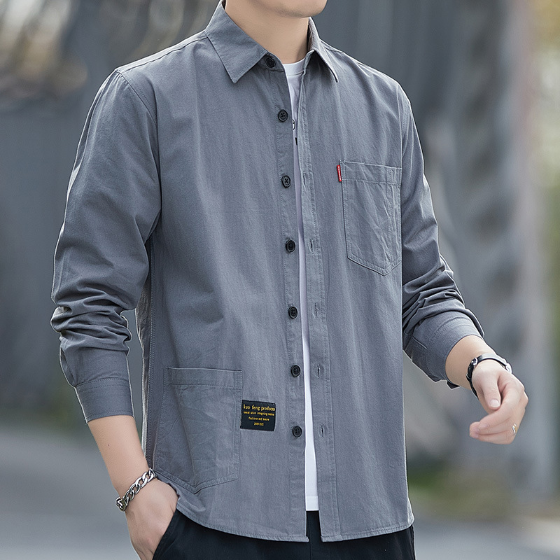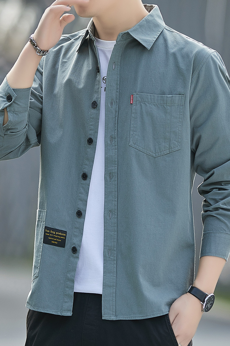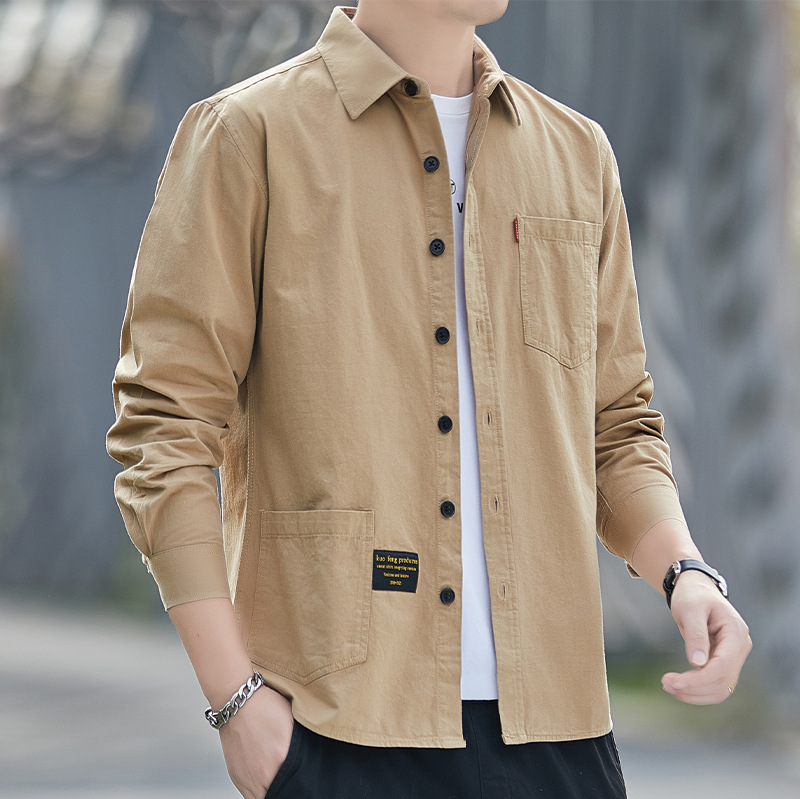 가을 100 면 남성 패션 긴 소매 셔츠 캐주얼 올 매치 비즈니스 셔츠 남성 탑 재킷