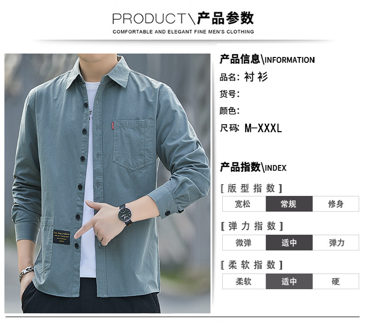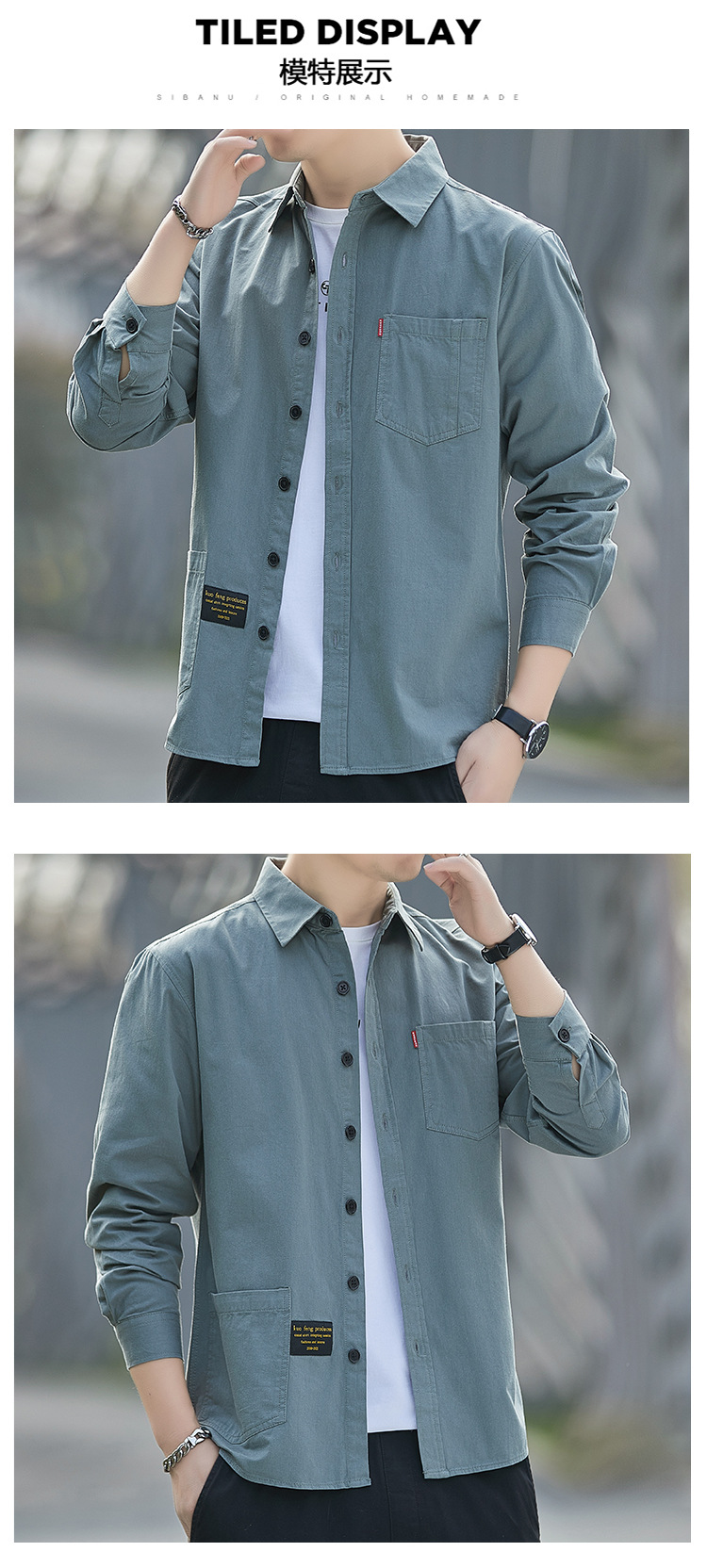 가을 100 면 남성 패션 긴 소매 셔츠 캐주얼 올 매치 비즈니스 셔츠 남성 탑 재킷스토어 가기
