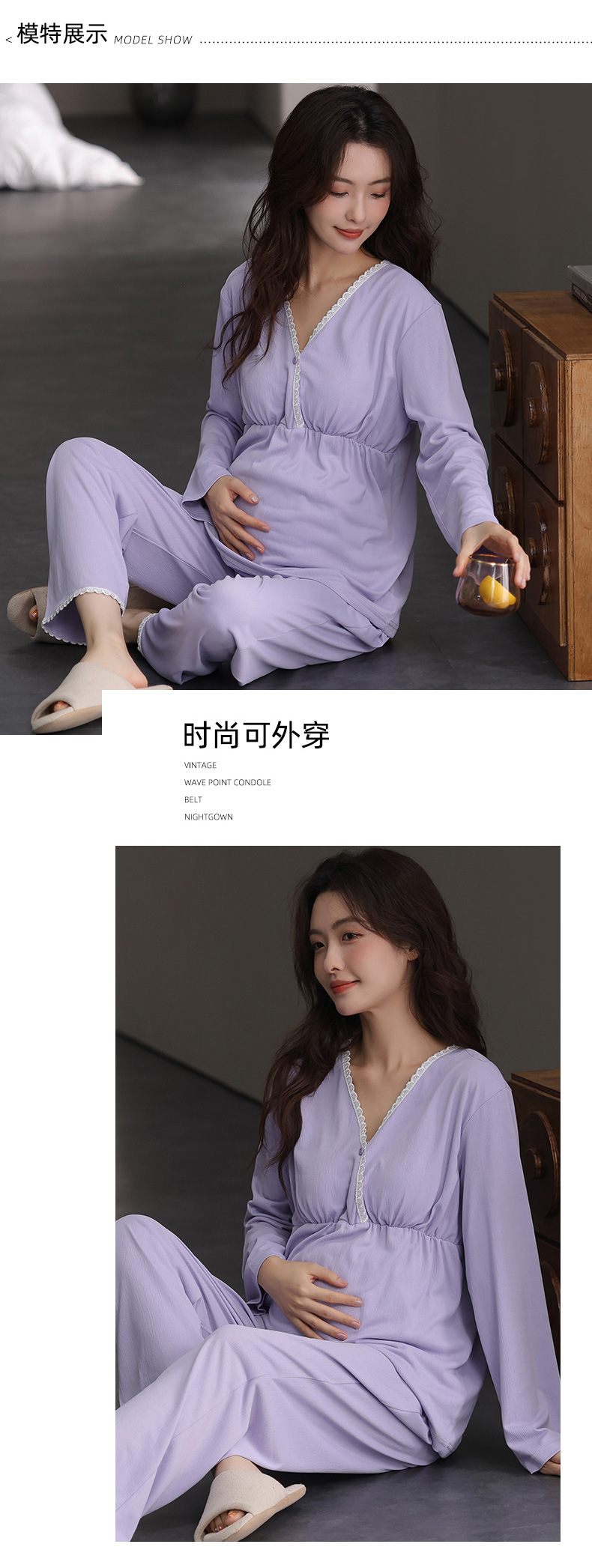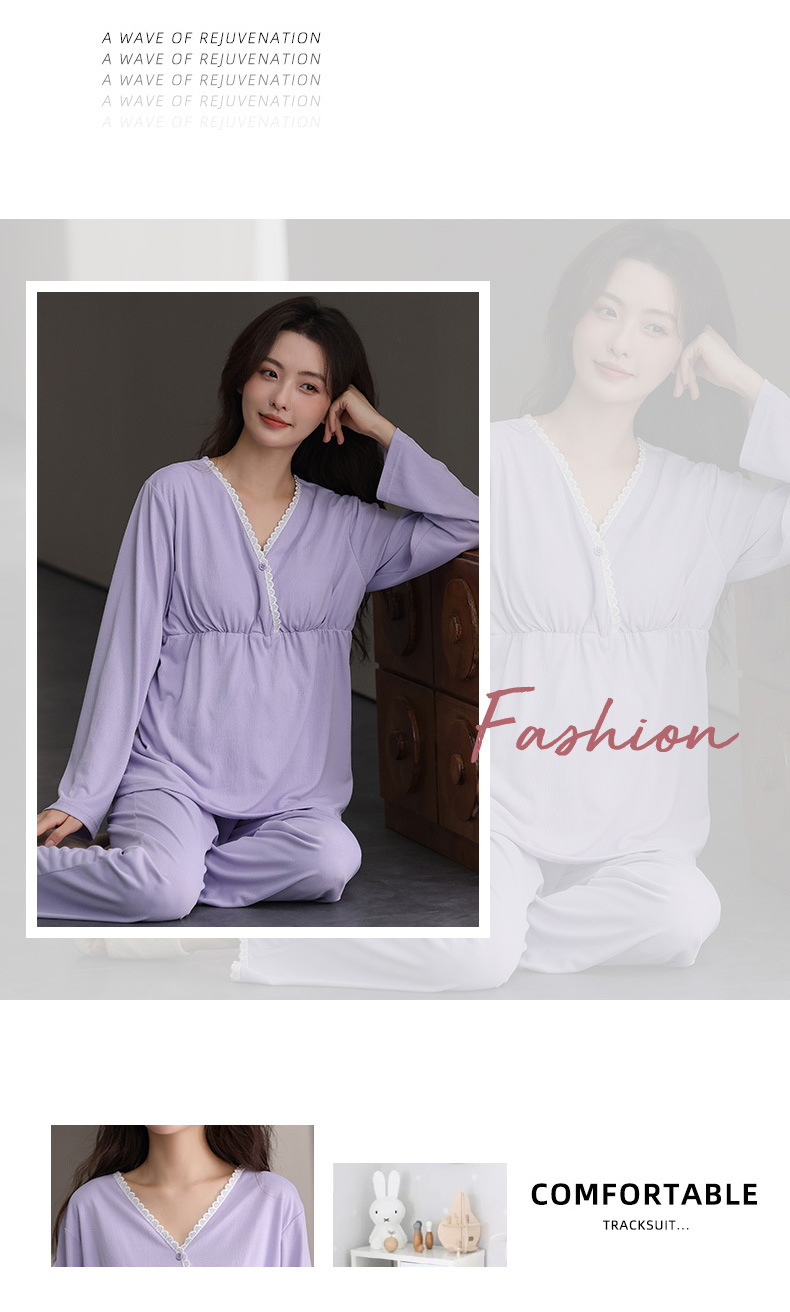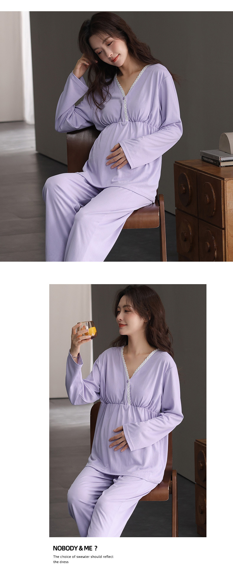 가슴 패드 잠옷을 입은 모유 수유 문 의류 여성의 봄과 가을 얇은 긴 소매 세트 조끼 플러스 사이즈 바지 홈 옷스토어 가기