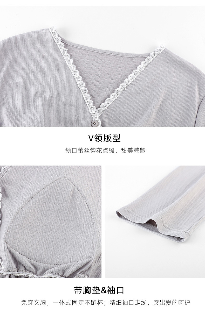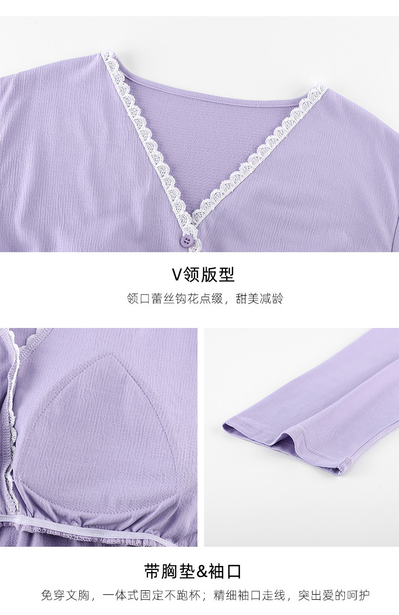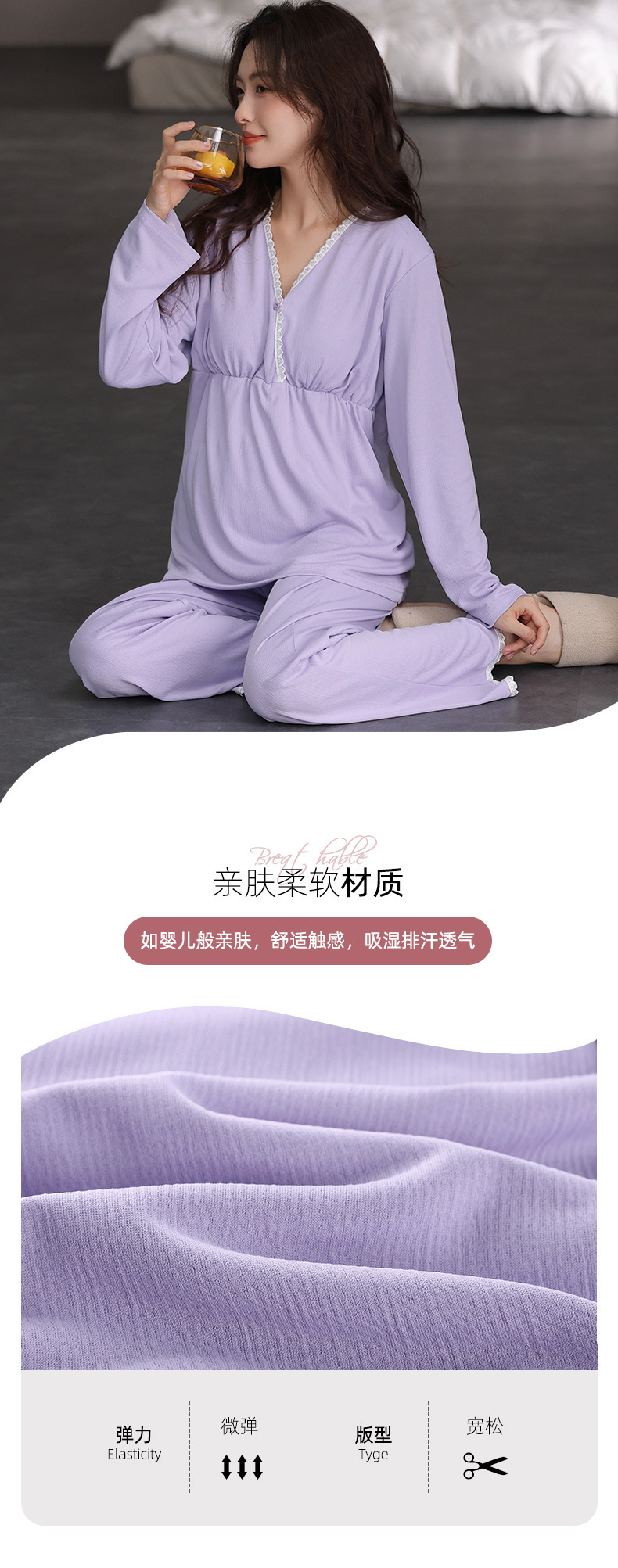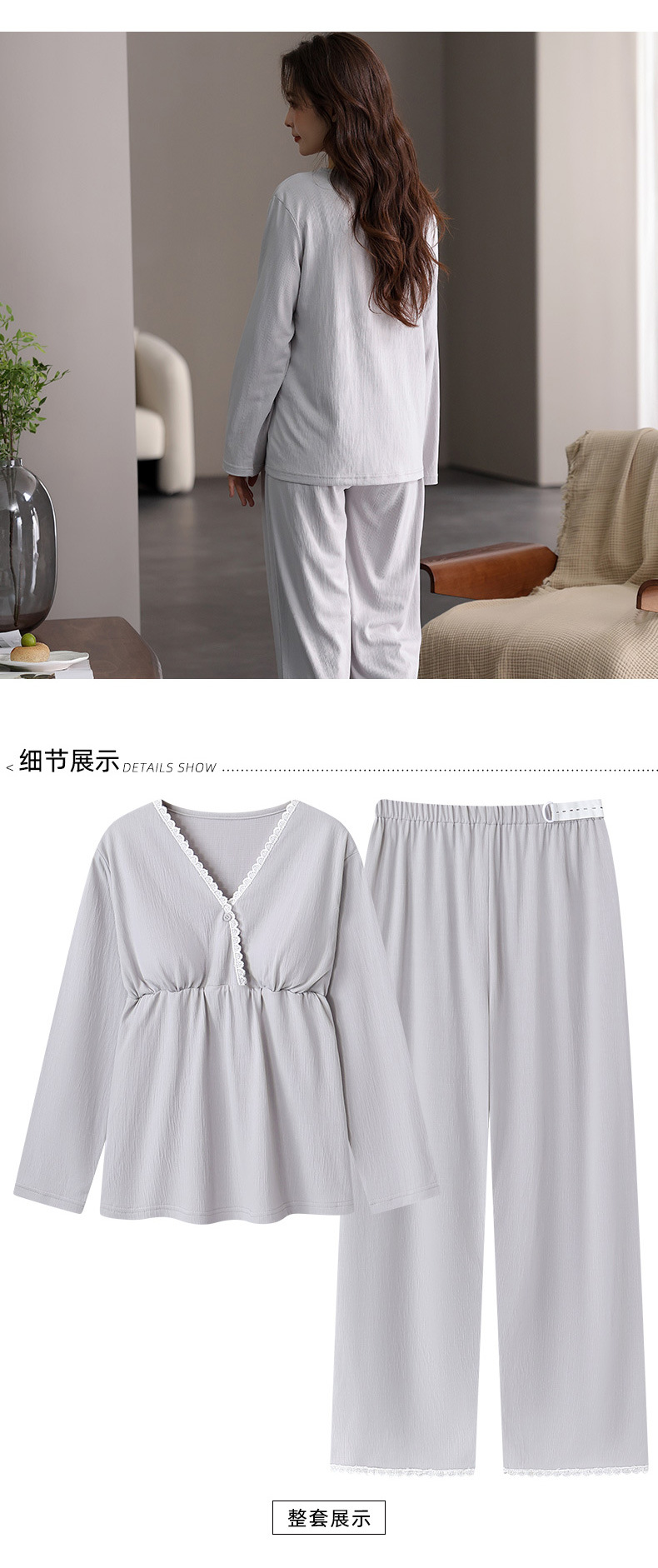 가슴 패드 잠옷을 입은 모유 수유 문 의류 여성의 봄과 가을 얇은 긴 소매 세트 조끼 플러스 사이즈 바지 홈 옷스토어 가기