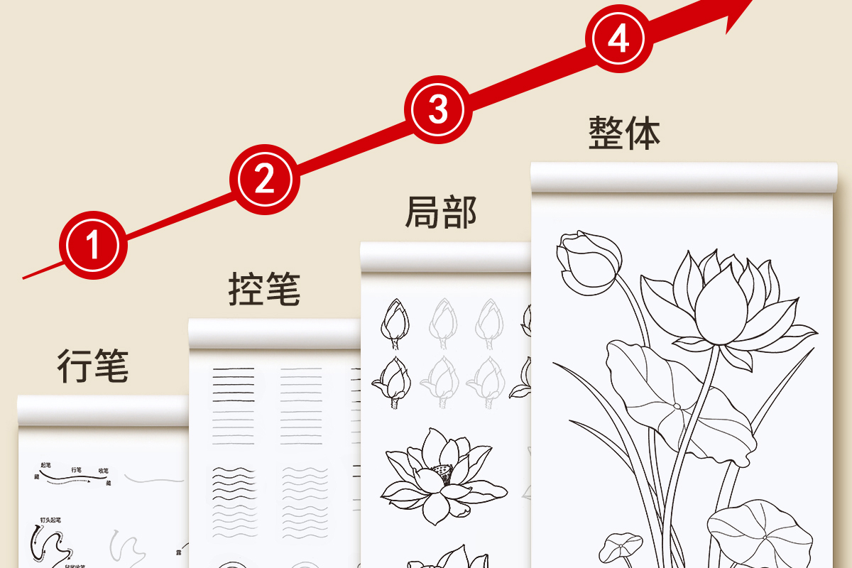 중국 회화 선 그리기 복사 책 초안 제어 펜 풍경 그림 라인 초안 그림 꽃과 새 시작