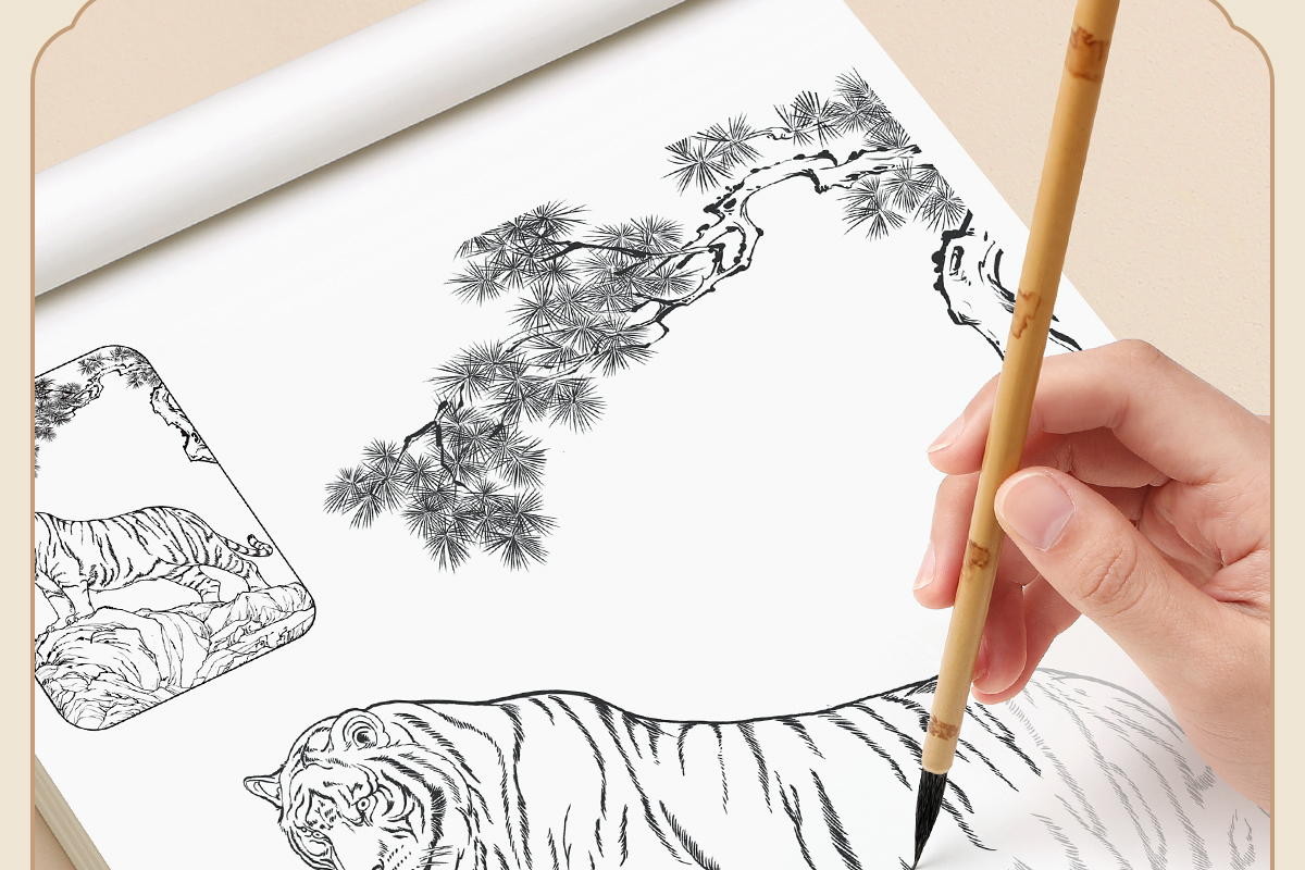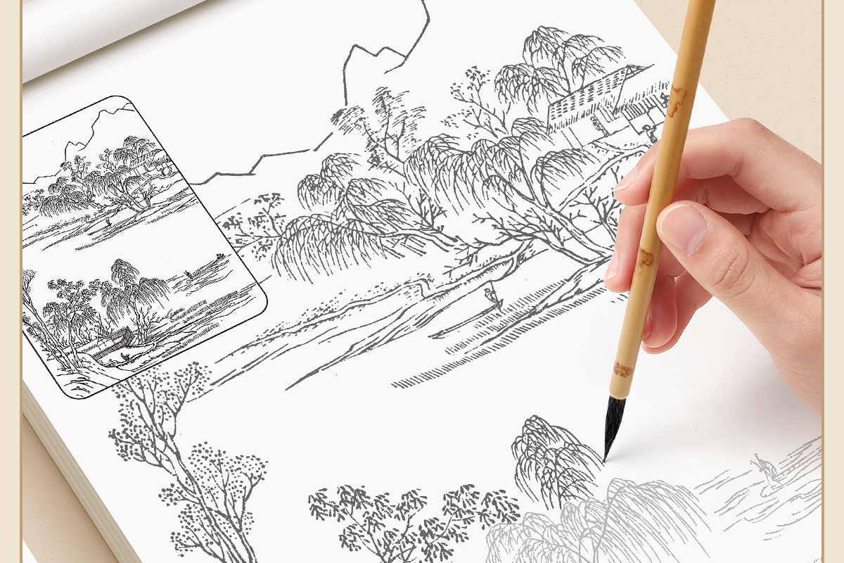 중국 회화 선 그리기 복사 책 초안 제어 펜 풍경 그림 라인 초안 그림 꽃과 새 시작스토어 가기