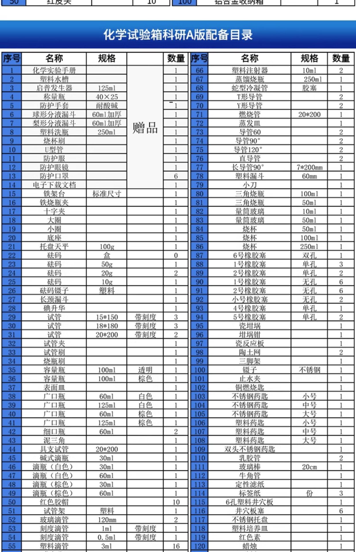 중학교 입학 시험 중학교 화학 실험 장비 전체 화학 실험 세트 세트 고등학교 화학 상자 9 학년 학생들