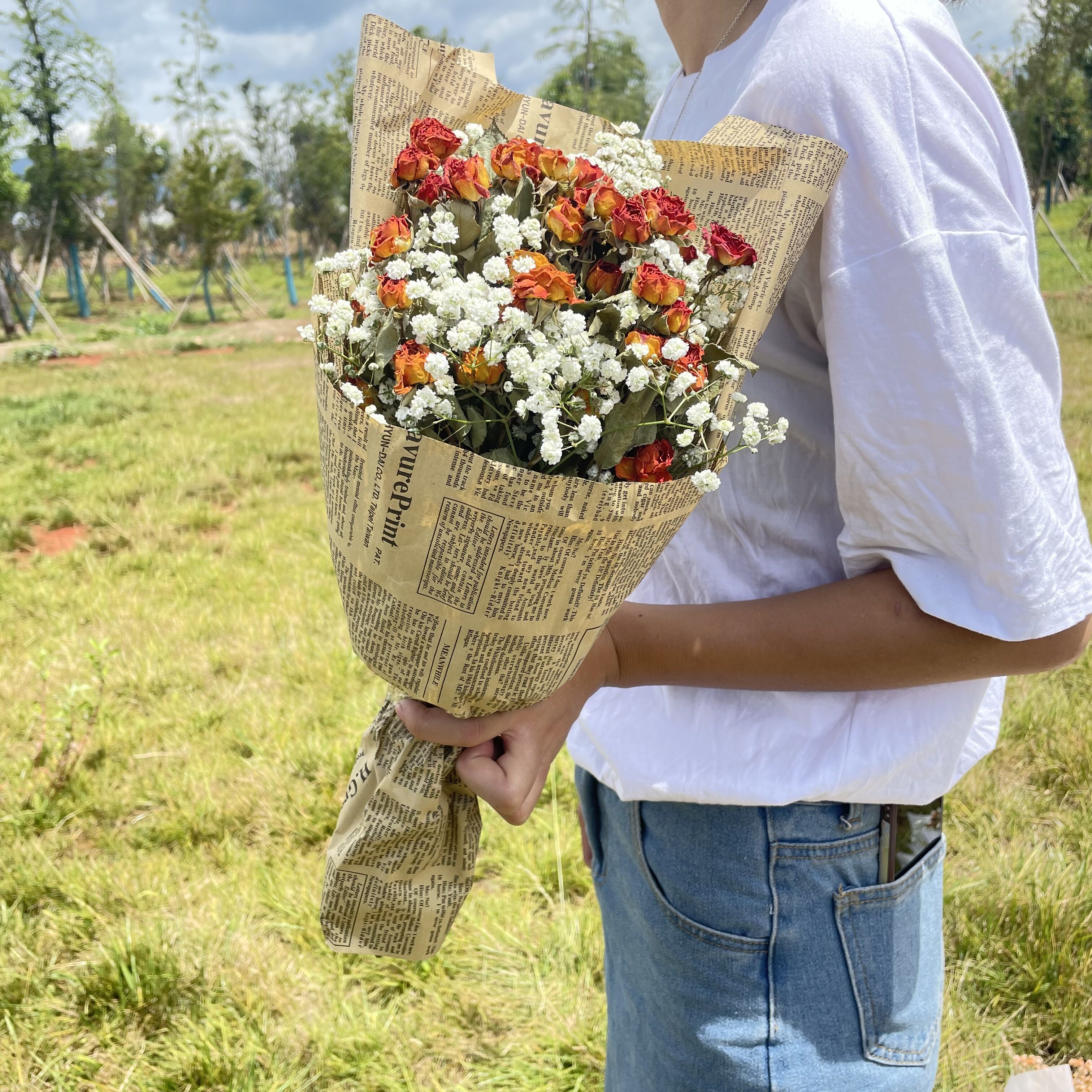• 뉴 오렌지 로즈 안개꽃 포장-드라이 플라워 백