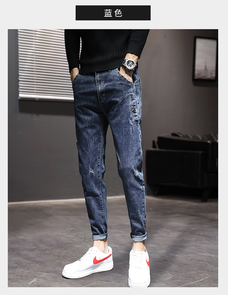 청바지 남성용 슬림 핏 스키니 9 점 캐주얼 봄과 가을 남자 핫 2023 새로운 패션 브랜드 가을 긴 바지