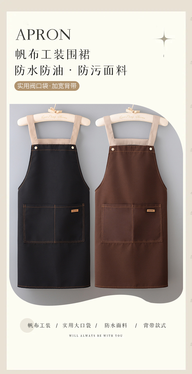 두꺼운 방수 캔버스 앞치마 주방 우유 차 가게 커피 숍 로고 인쇄 남성과 여성을위한 특수 허리