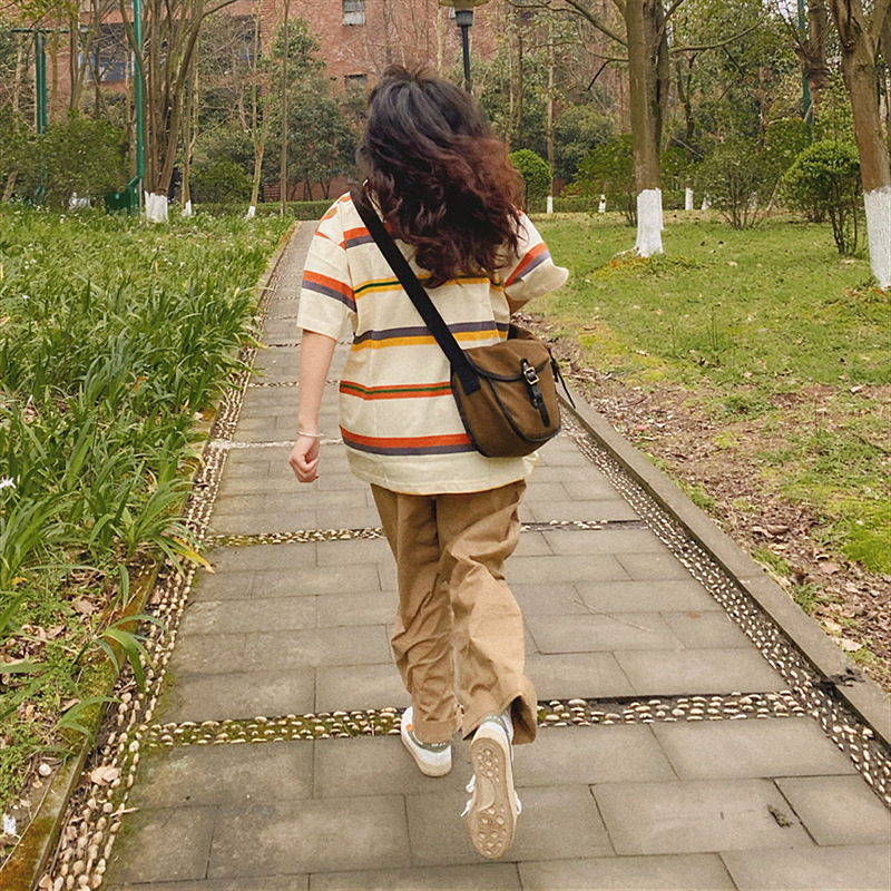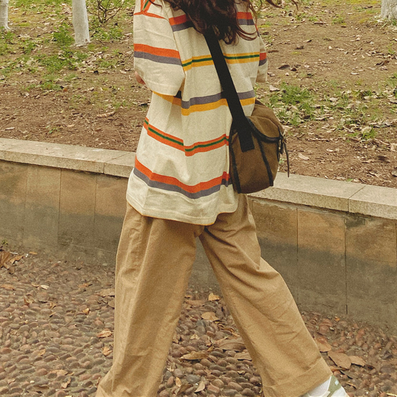 트렌디 한 Ins 일본 스타일 빈티지 캐주얼 바지 Bf 느슨한 넓은 다리 스트레이트 바지 2024 가을 작업 바지 단색 여성