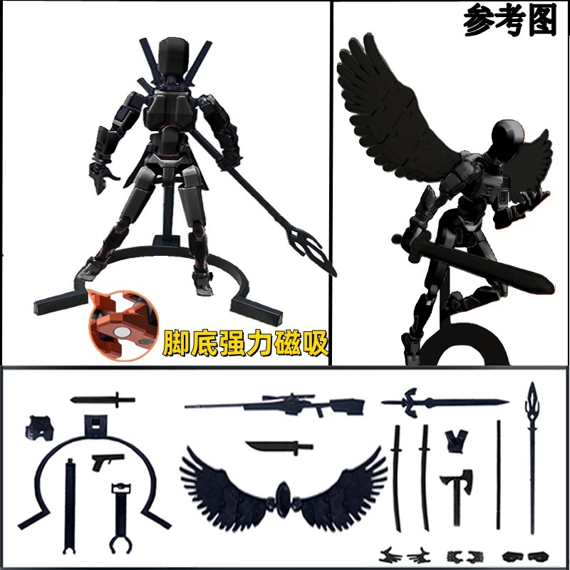 • [마그네틱 모델-블랙] 손 3개 + 무기 10개 + 뒷칼 + 날개 + 스탠드