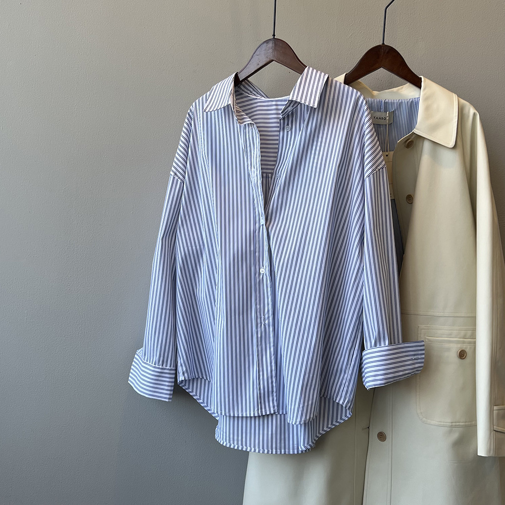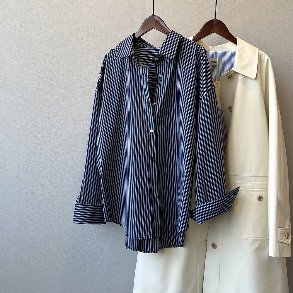 Yan Shuang 프랑스 복고풍 줄무늬 셔츠 여성 가을 새로운 느슨한 긴팔 디자인 틈새 셔츠 3188스토어 가기