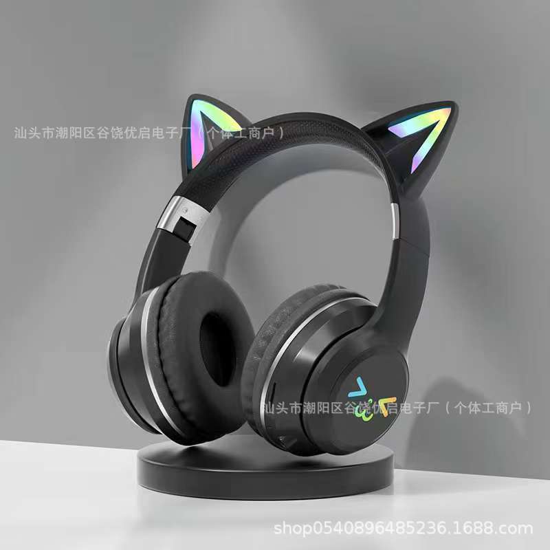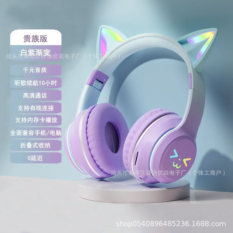 [새로운] 국경 간 헤드셋 블루투스 헤드셋 BT035C 그라디언트 고양이 귀 빛나는 게임 헤드셋스토어 가기