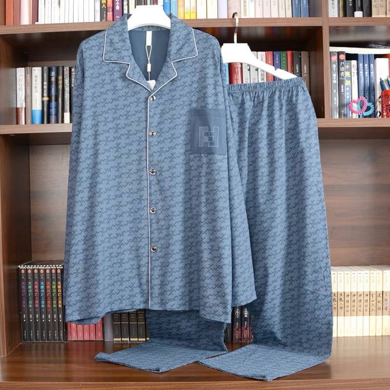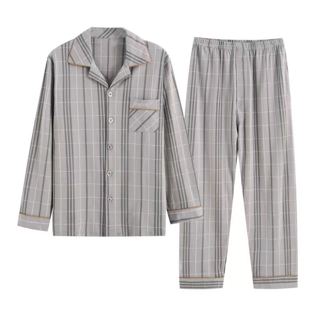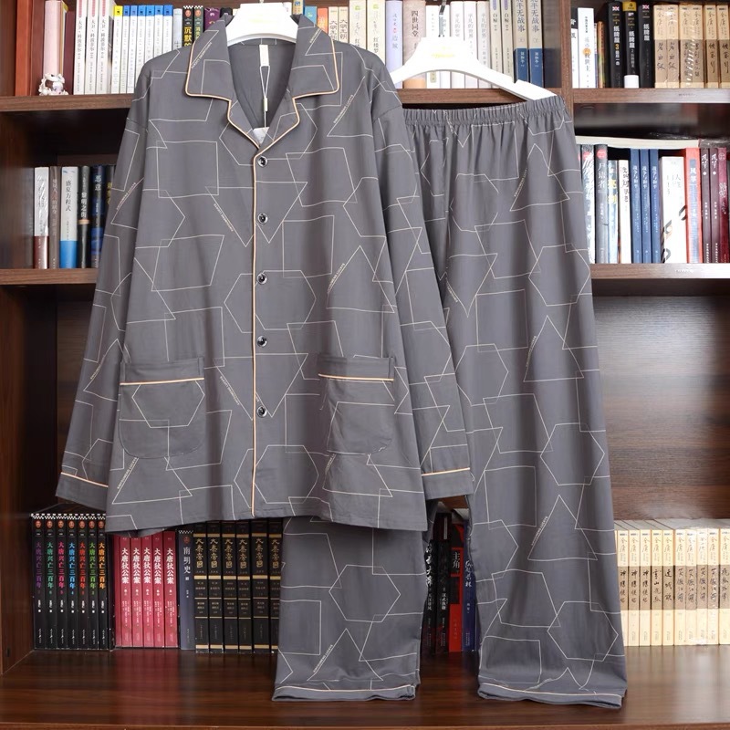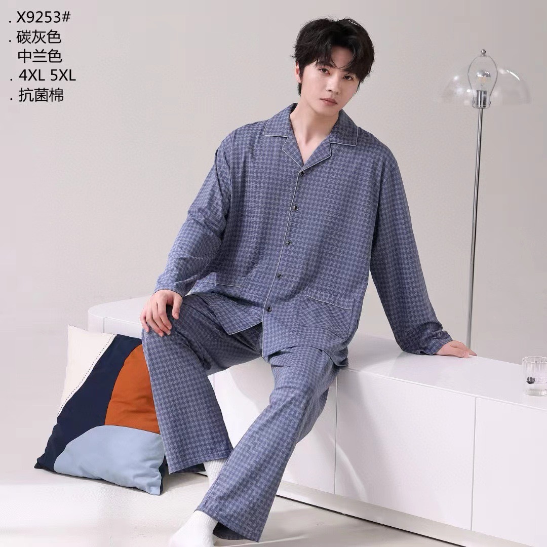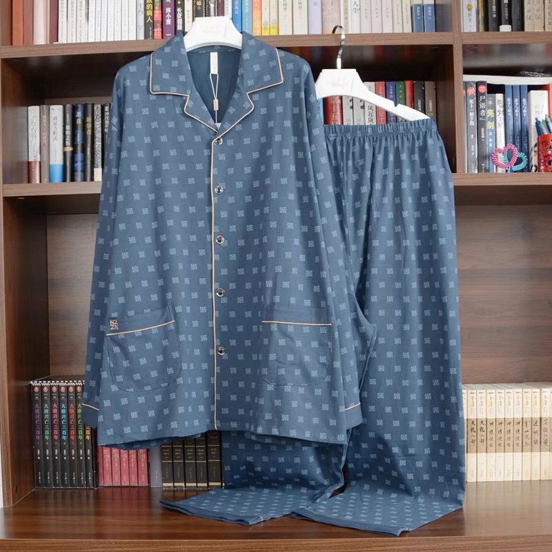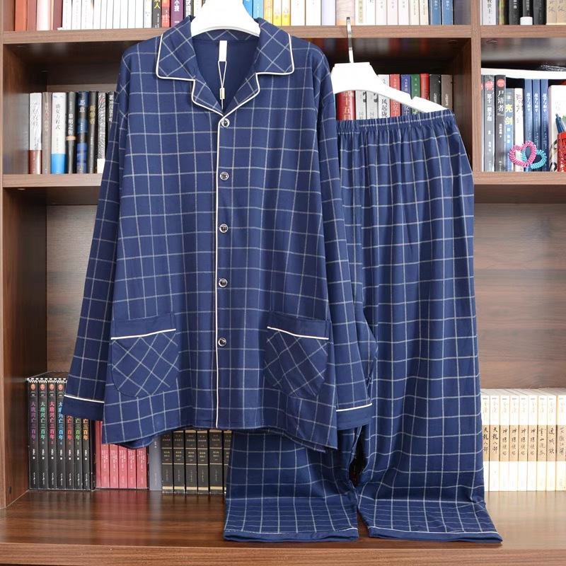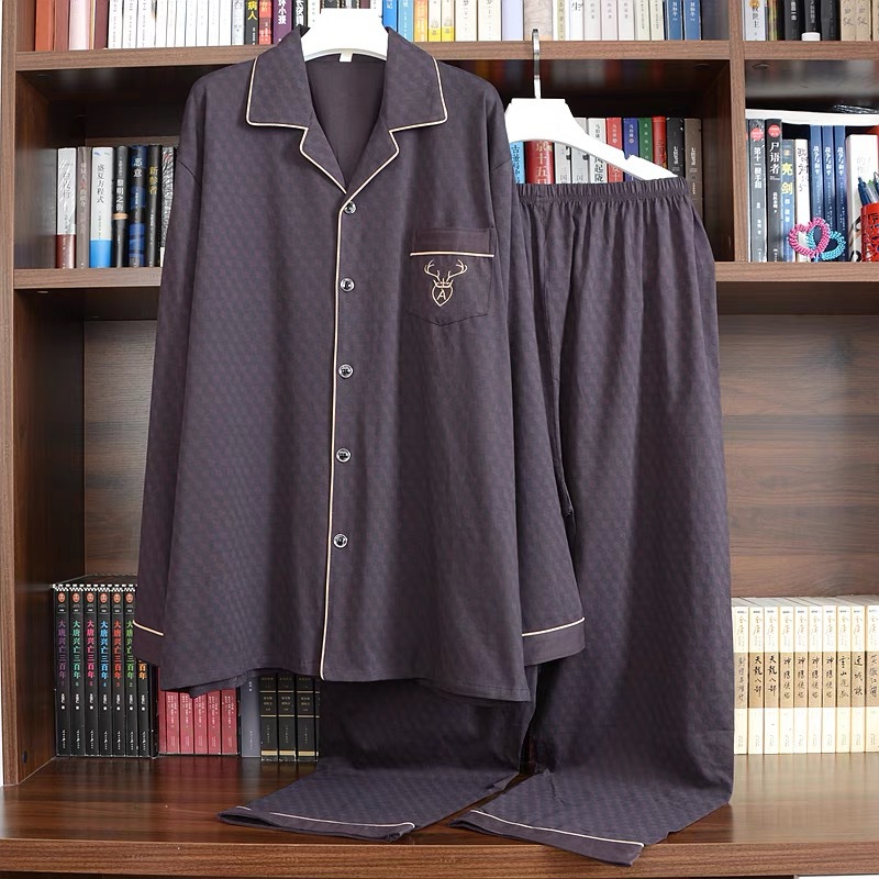 파자마를 늘리기 위해 비료를 추가 남성 봄과 가을 긴 소매면 쿨코튼 초대형 200kg 250kg 잠옷 집 옷스토어 가기