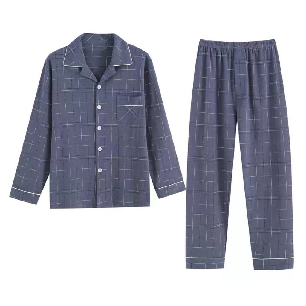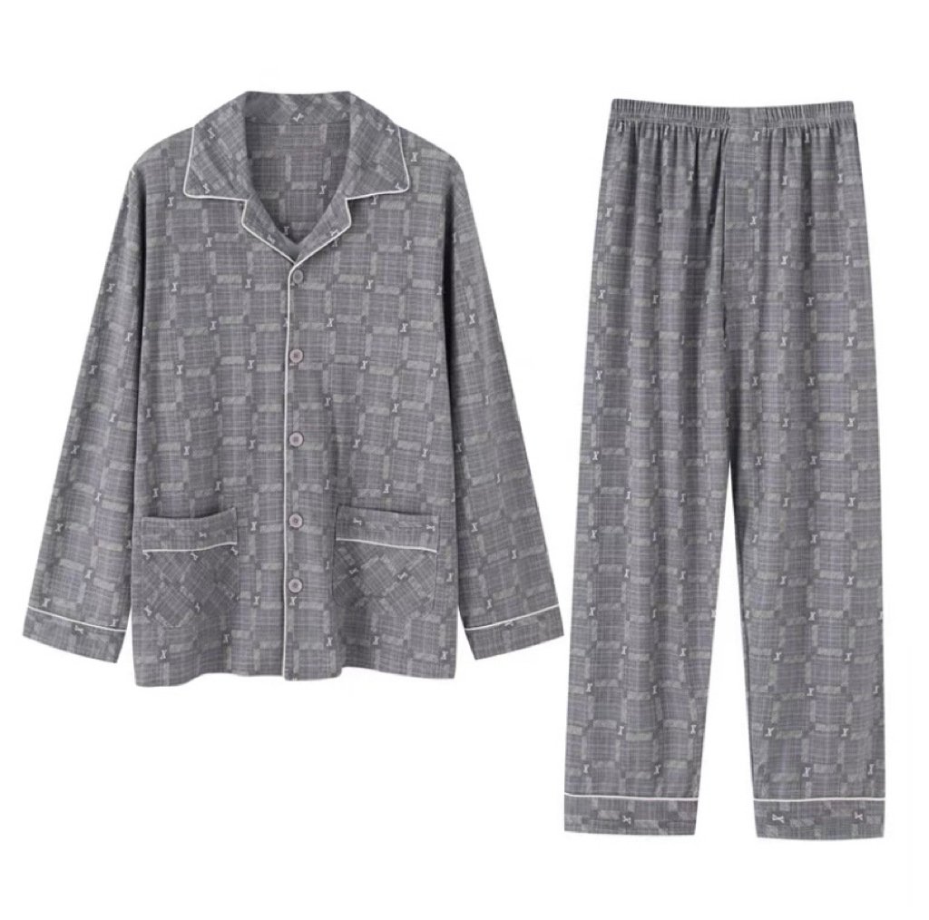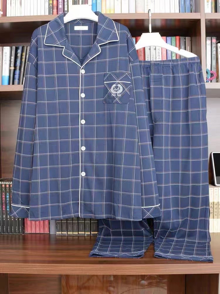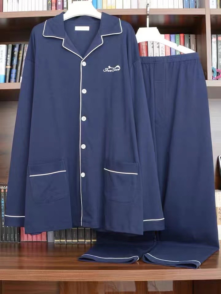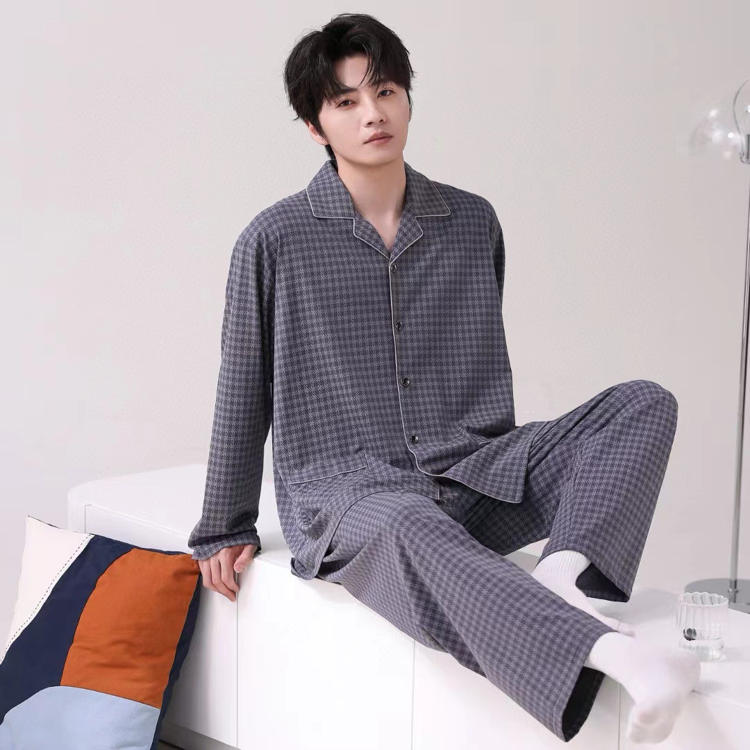 파자마를 늘리기 위해 비료를 추가 남성 봄과 가을 긴 소매면 쿨코튼 초대형 200kg 250kg 잠옷 집 옷스토어 가기
