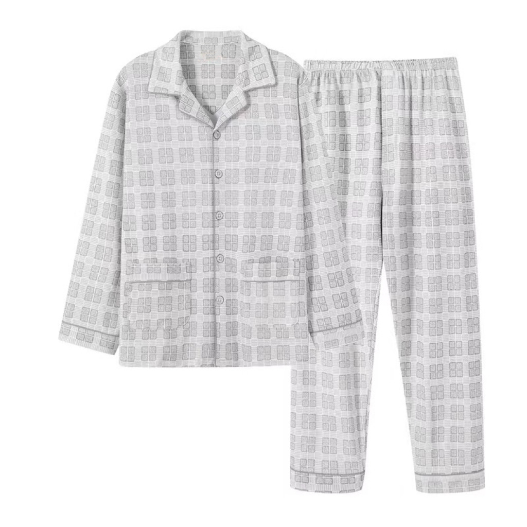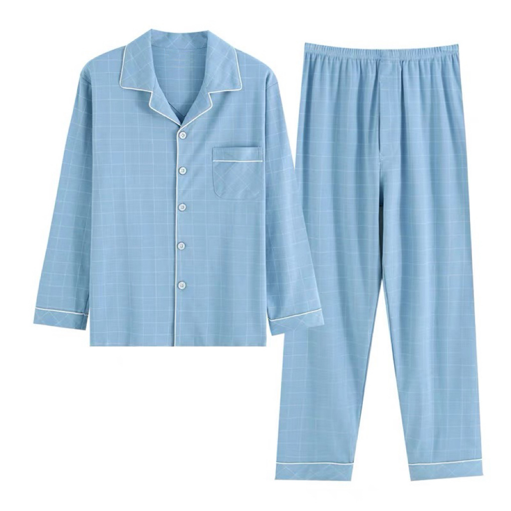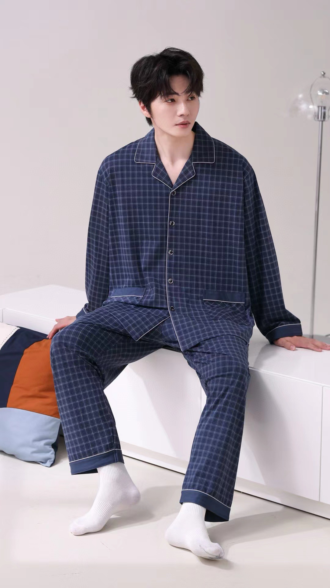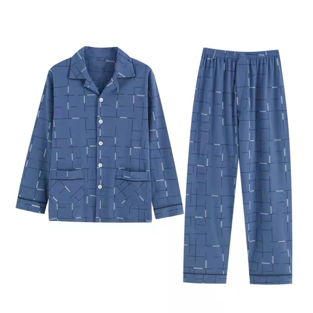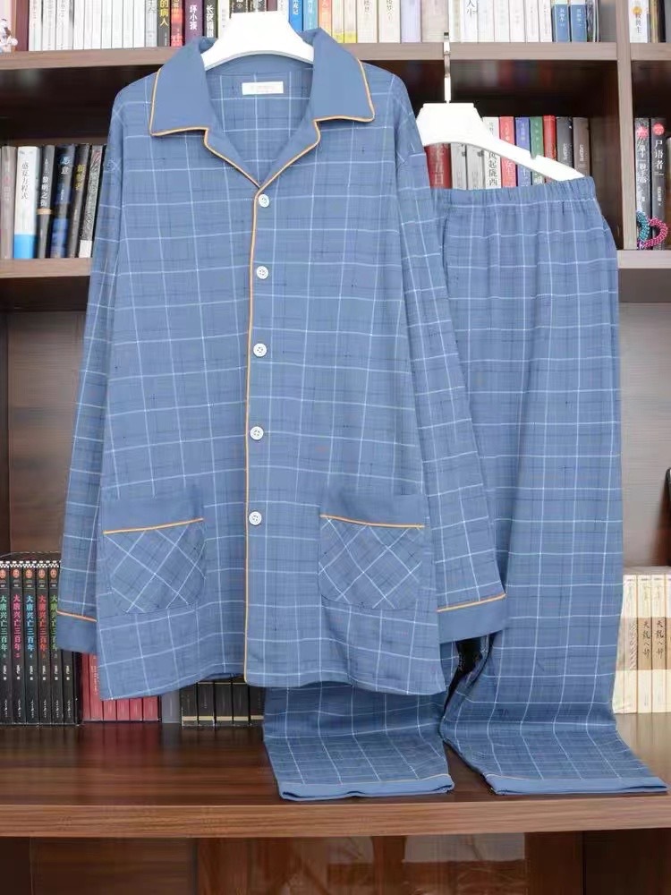 파자마를 늘리기 위해 비료를 추가 남성 봄과 가을 긴 소매면 쿨코튼 초대형 200kg 250kg 잠옷 집 옷스토어 가기