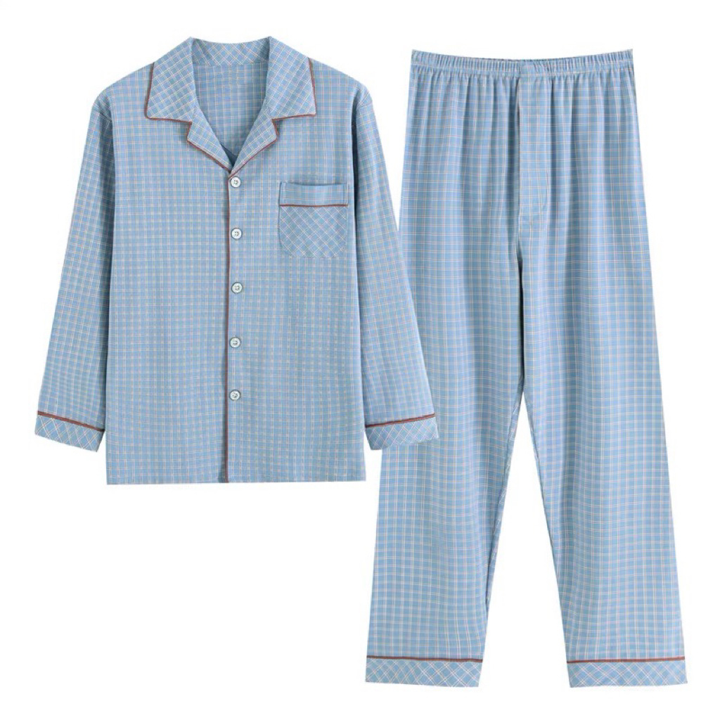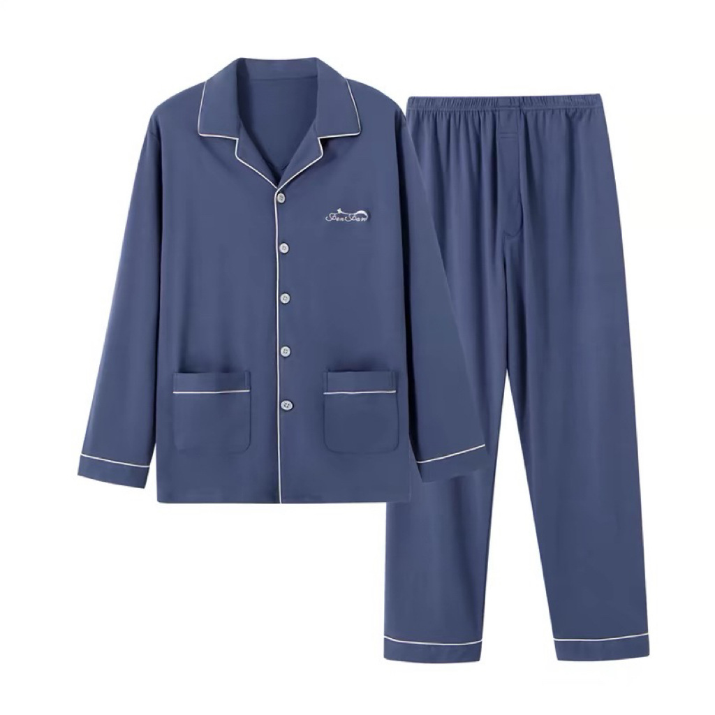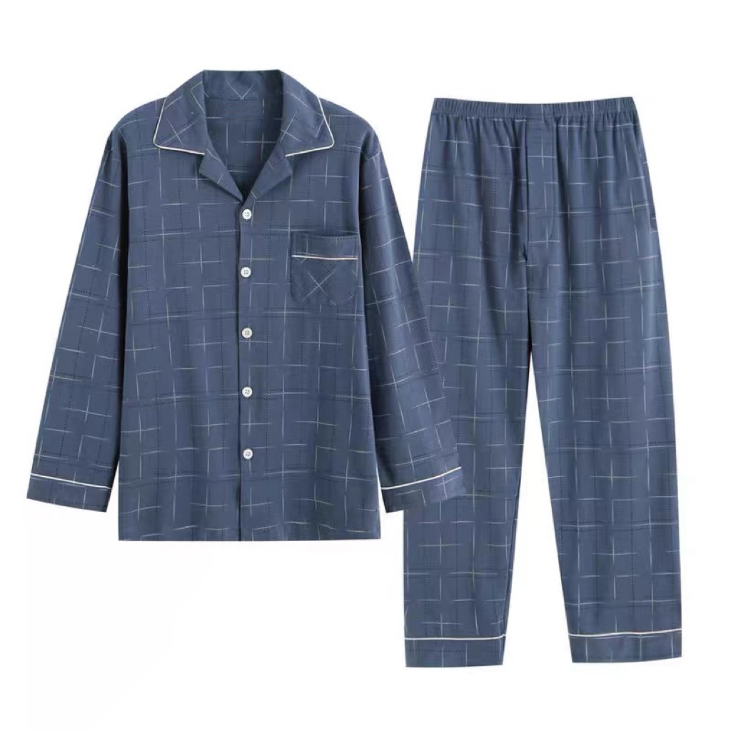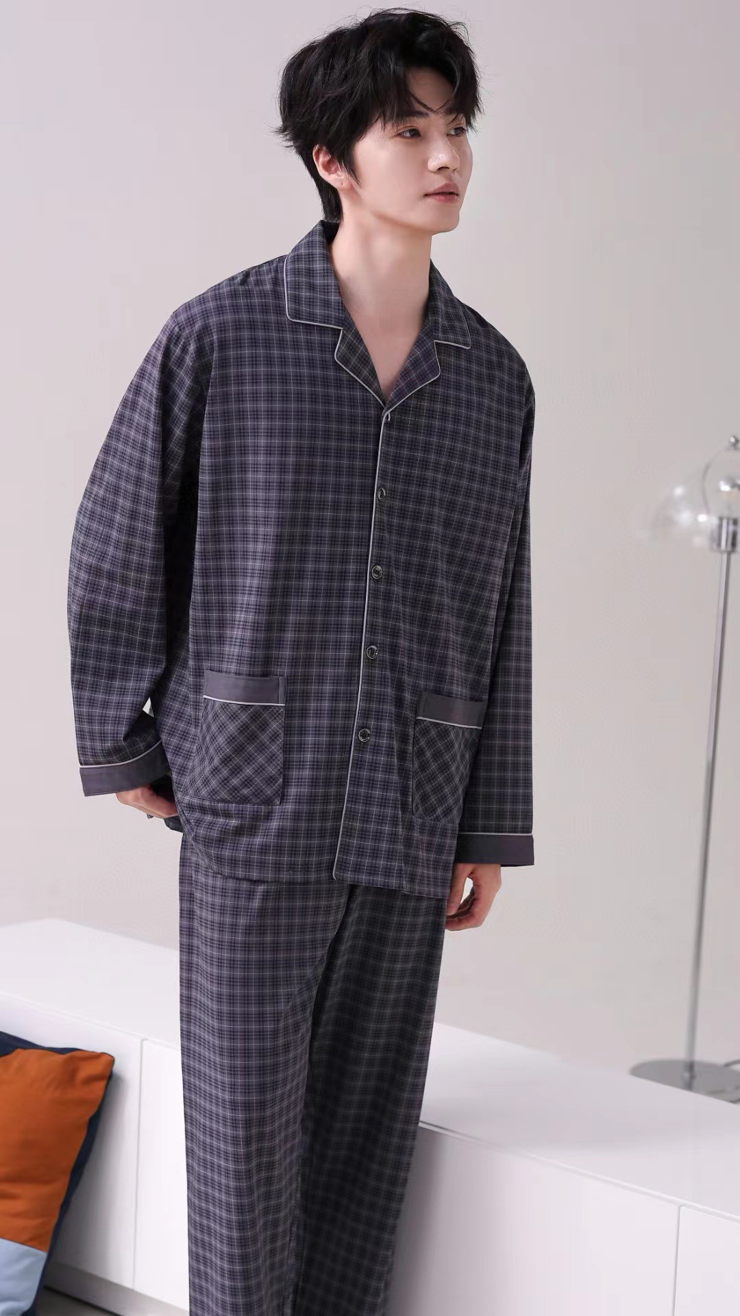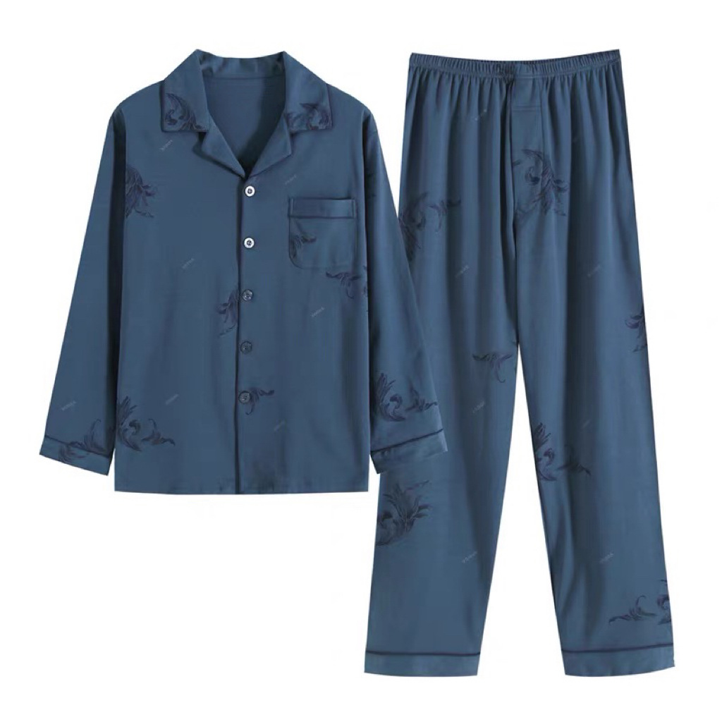파자마를 늘리기 위해 비료를 추가 남성 봄과 가을 긴 소매면 쿨코튼 초대형 200kg 250kg 잠옷 집 옷스토어 가기