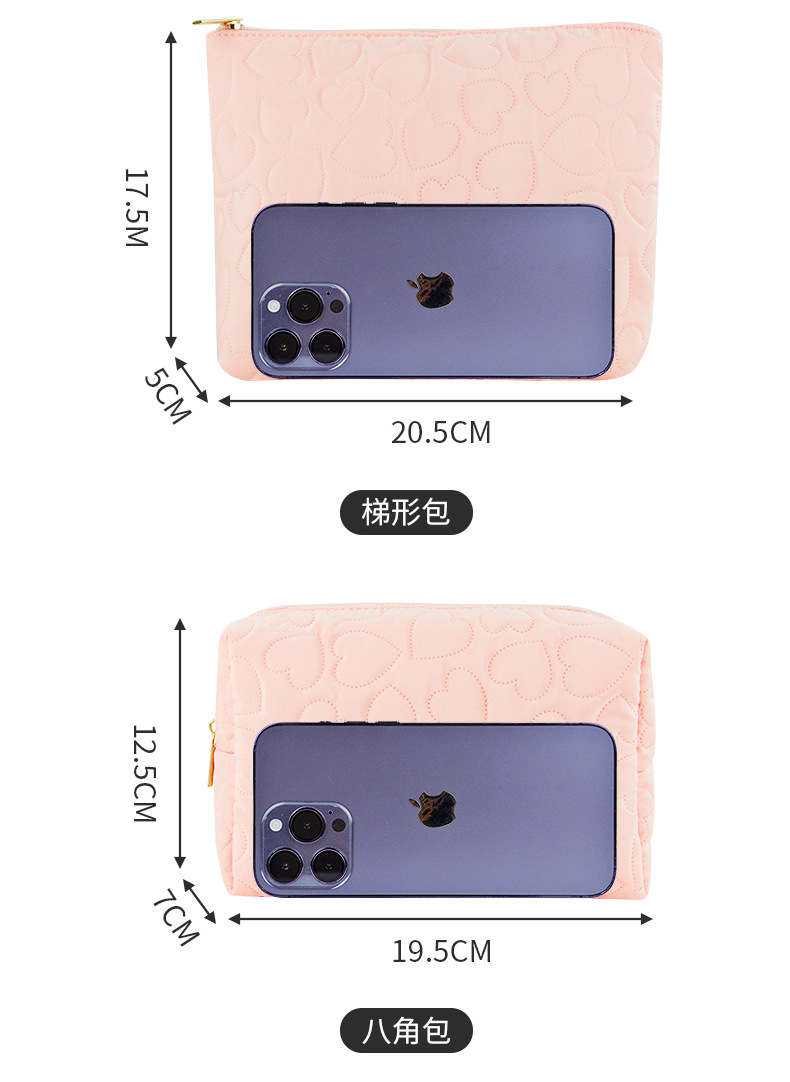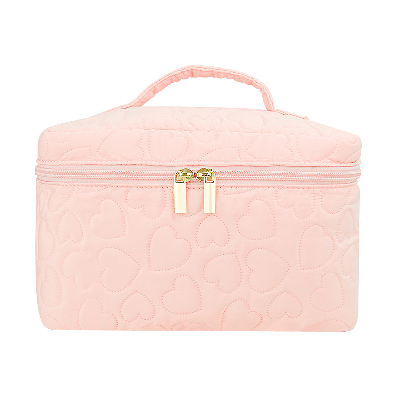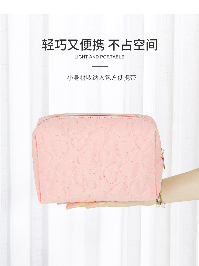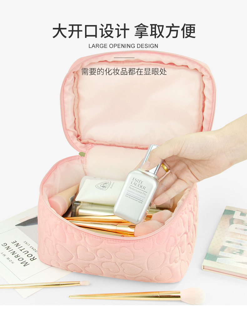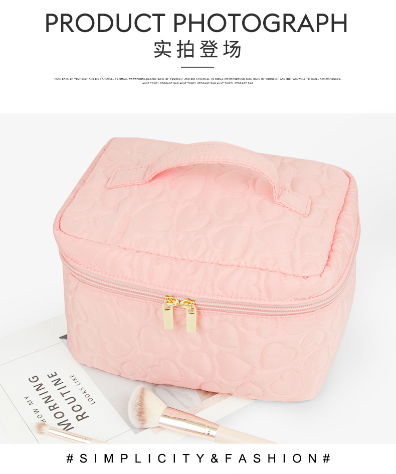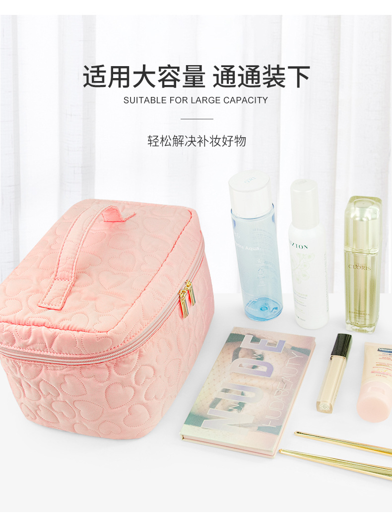 新款爱心夹棉可爱少女粉化妆包大容量ins旅行洗漱包便携化妆包