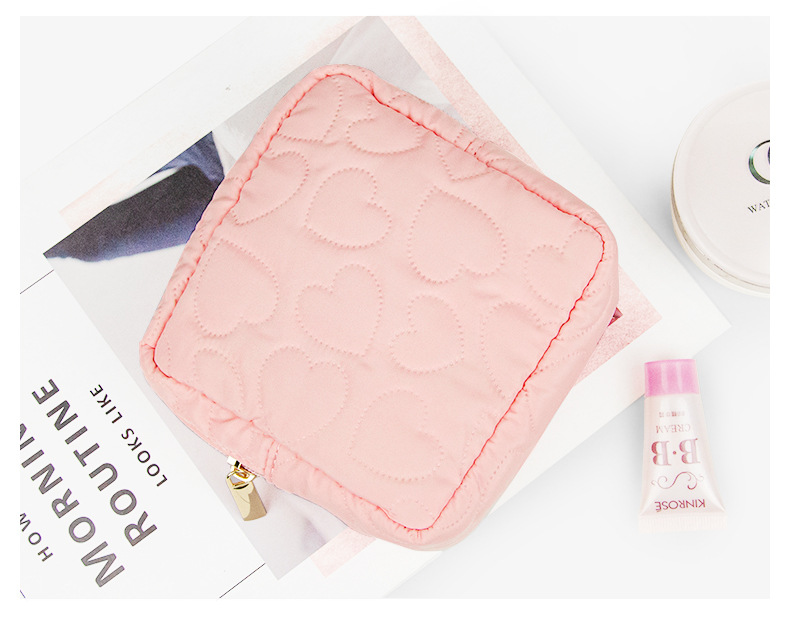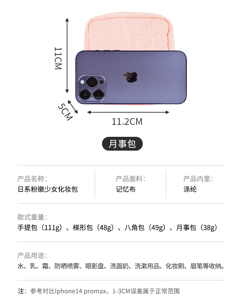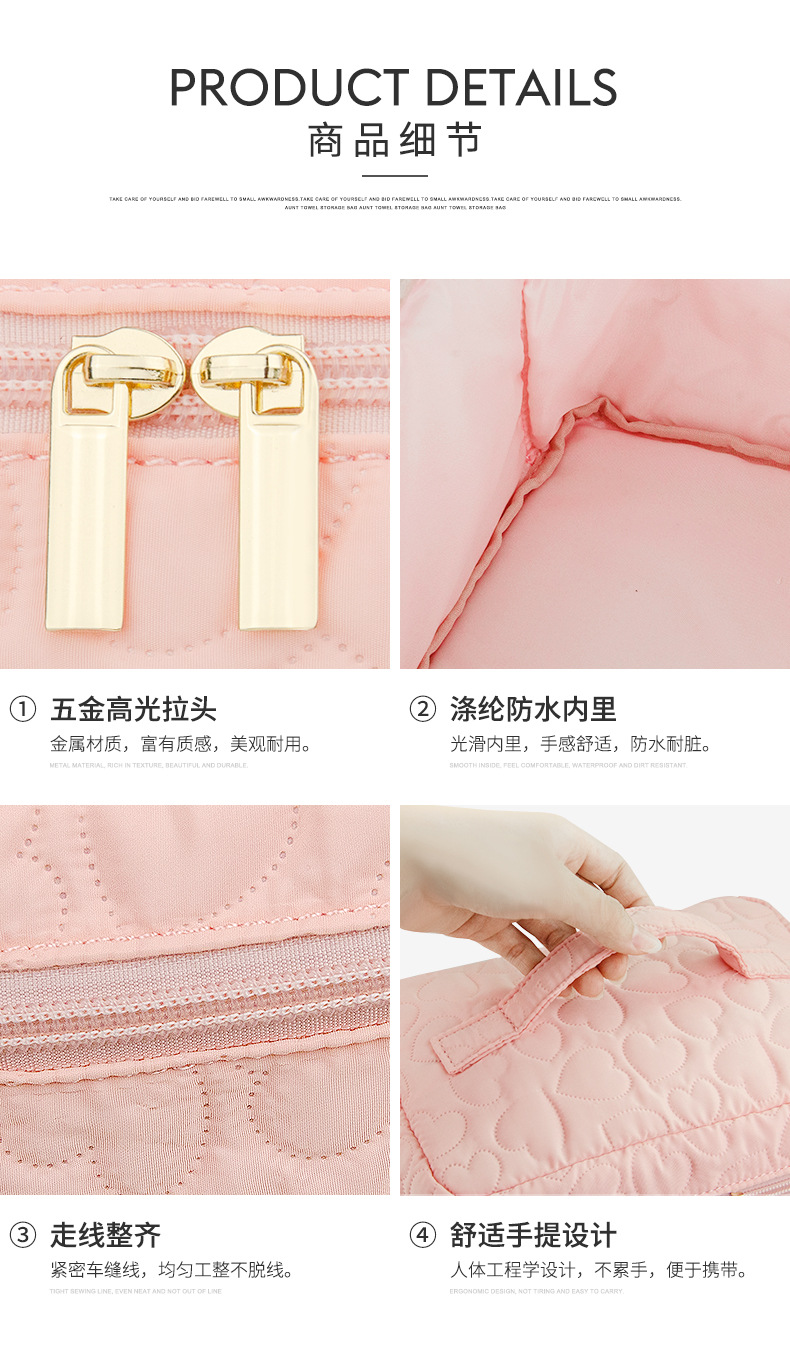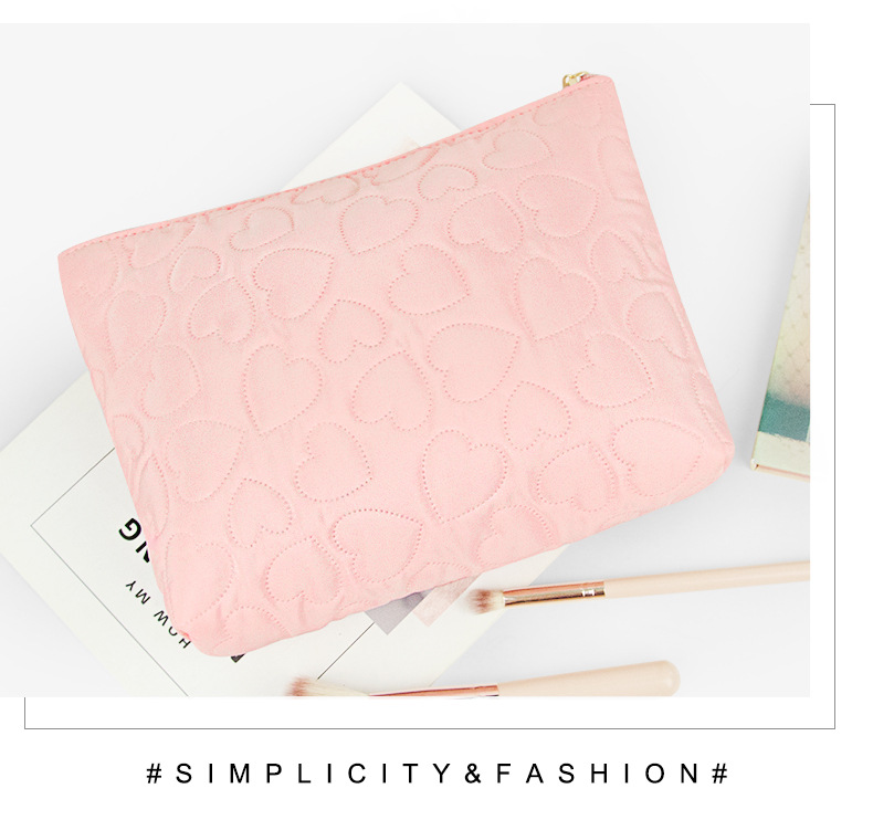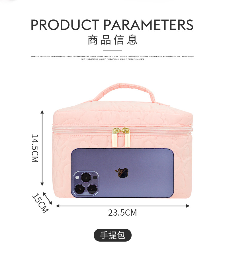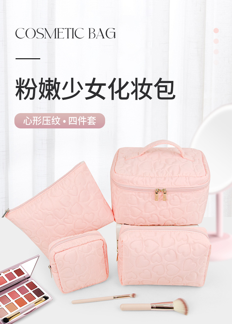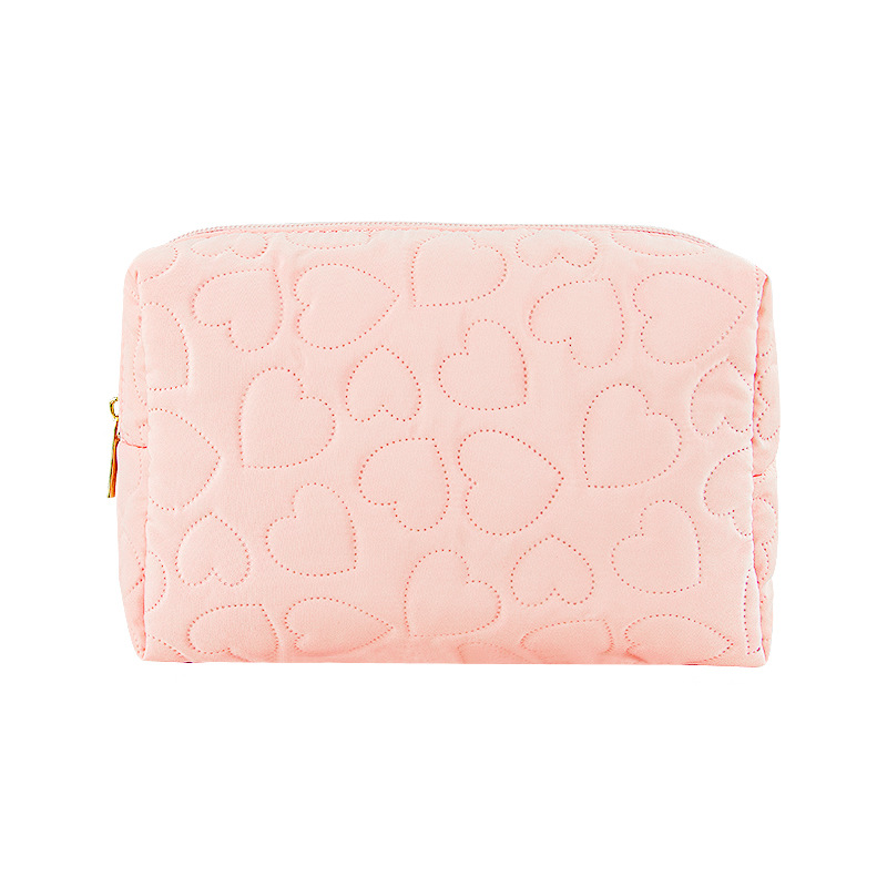 新款爱心夹棉可爱少女粉化妆包大容量ins旅行洗漱包便携化妆包