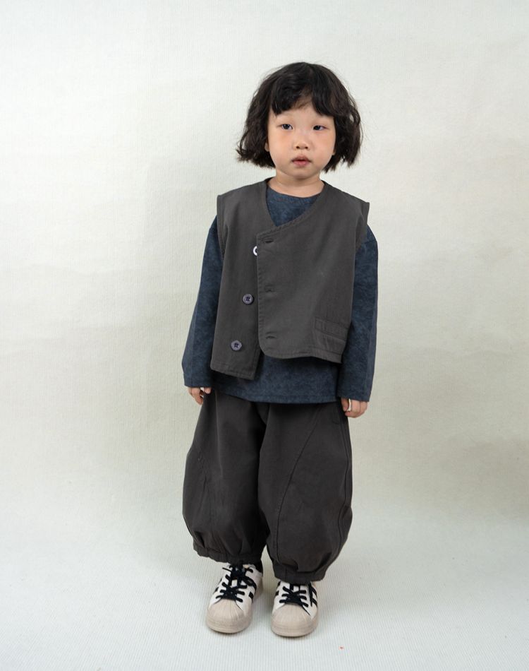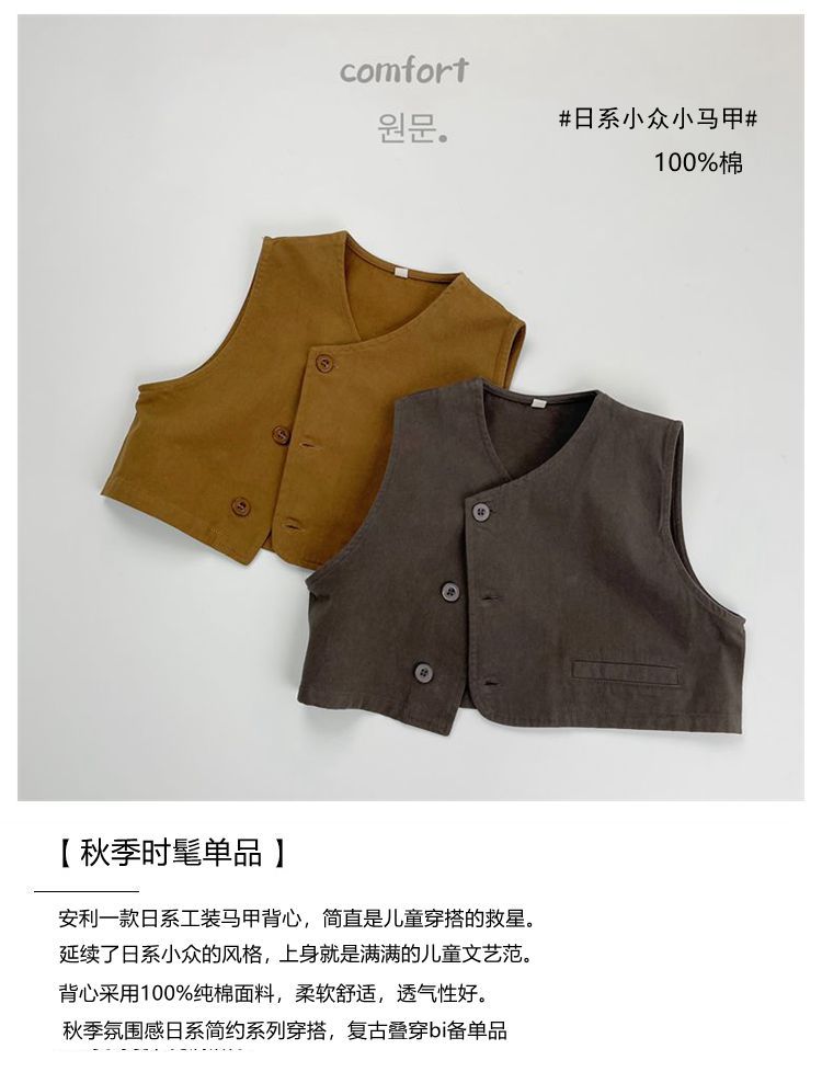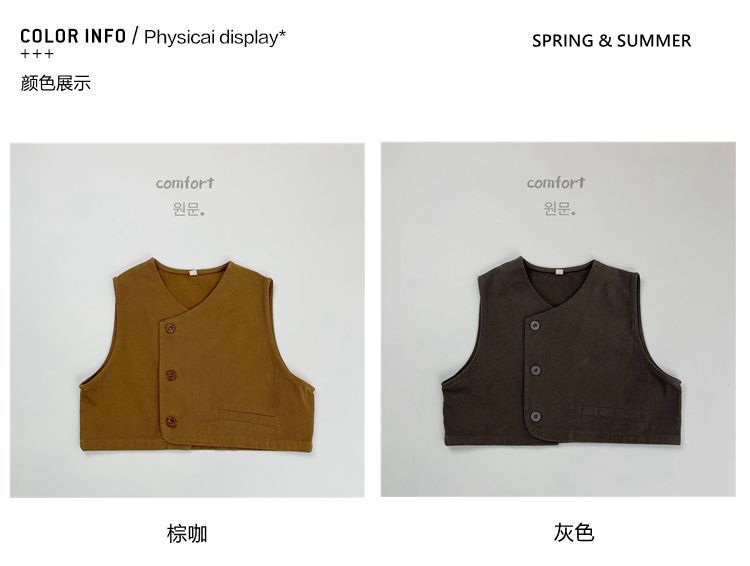 Hanxi 2025 봄과 가을 새로운 한국 스타일 아동 조끼 중간 및 짧은 비대칭 조끼 소년과 소녀를위한 양복 조끼