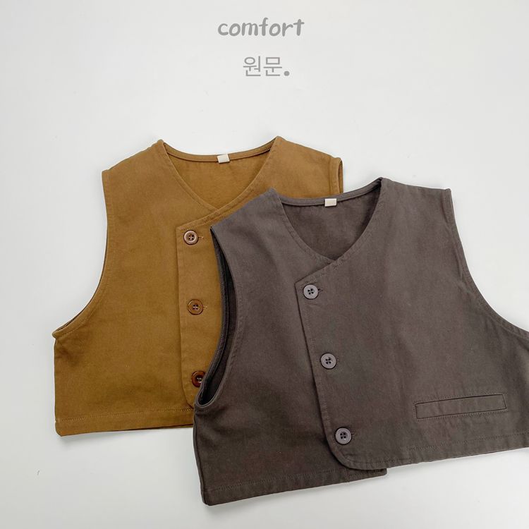 Hanxi 2025 봄과 가을 새로운 한국 스타일 아동 조끼 중간 및 짧은 비대칭 조끼 소년과 소녀를위한 양복 조끼스토어 가기