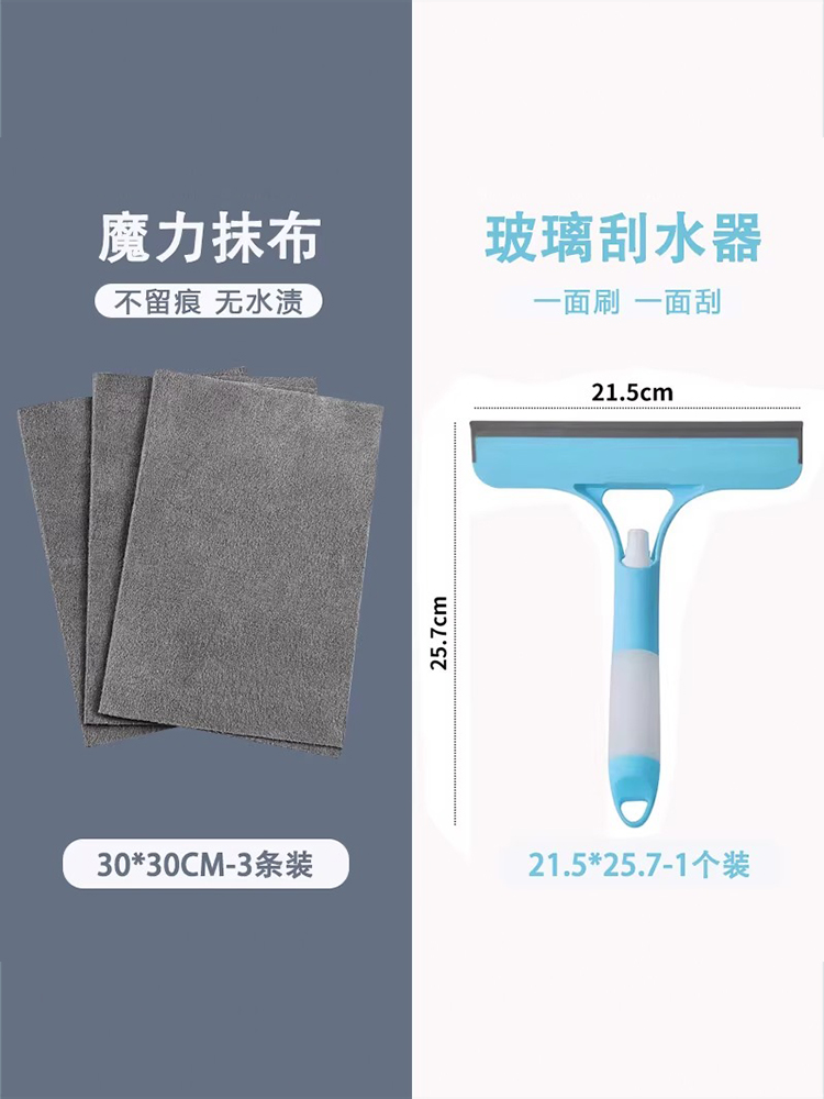 • ↤↤↤휴대용 물 스프레이 창 스크레이퍼 - 파란색 1개 + 30*30(3개 팩) 고품질 회색 매직 ↞↦↦
